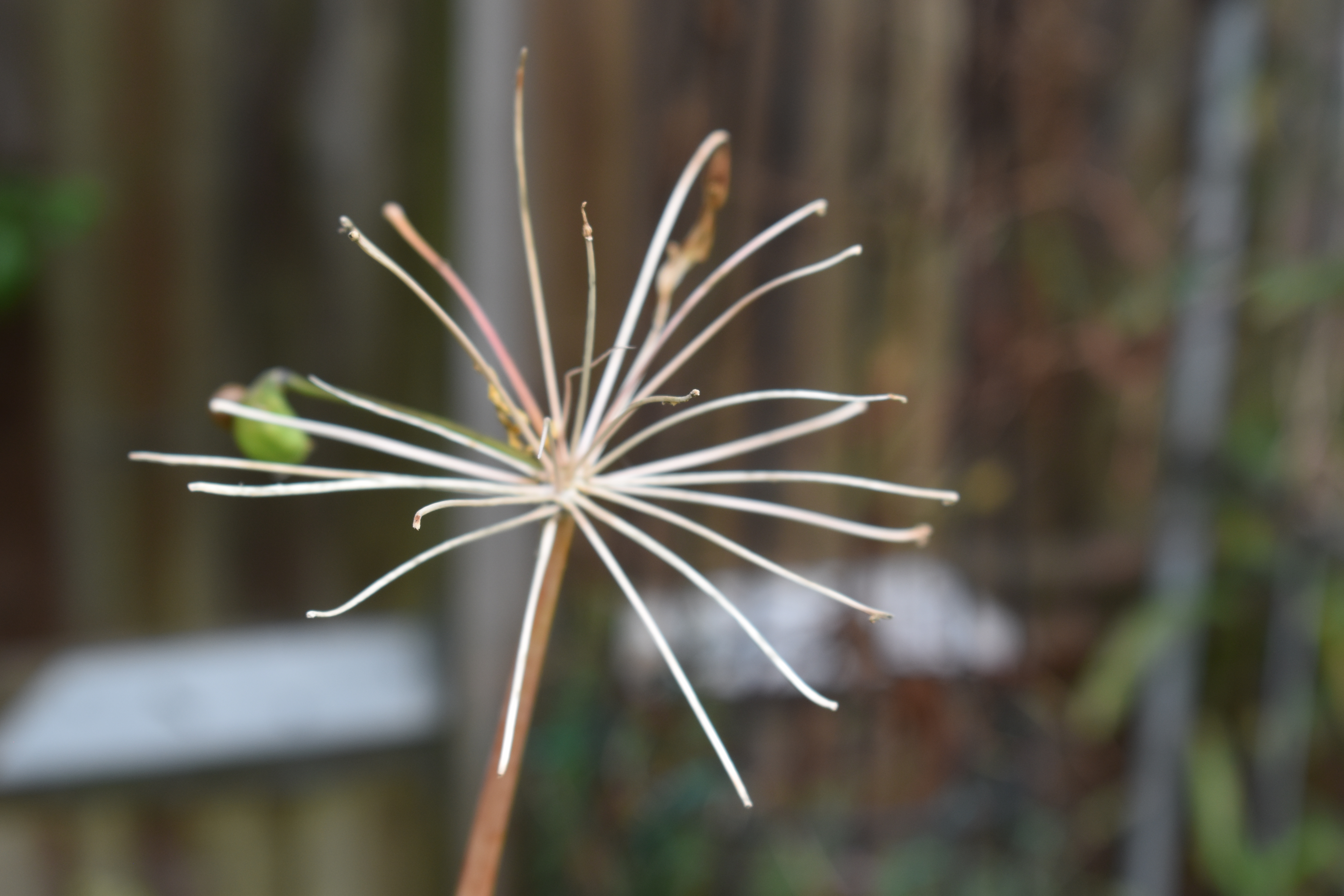 For the final page for September in my garden journal I looked at some surprise dried stems we found. I wrote, “While walking one of our several garden paths, I noticed how the flowering stems of hemerocallis (Day Lilies) stood upright and firm, dried to bone colours. Each head was different but all were reminiscent of deer antlers.”