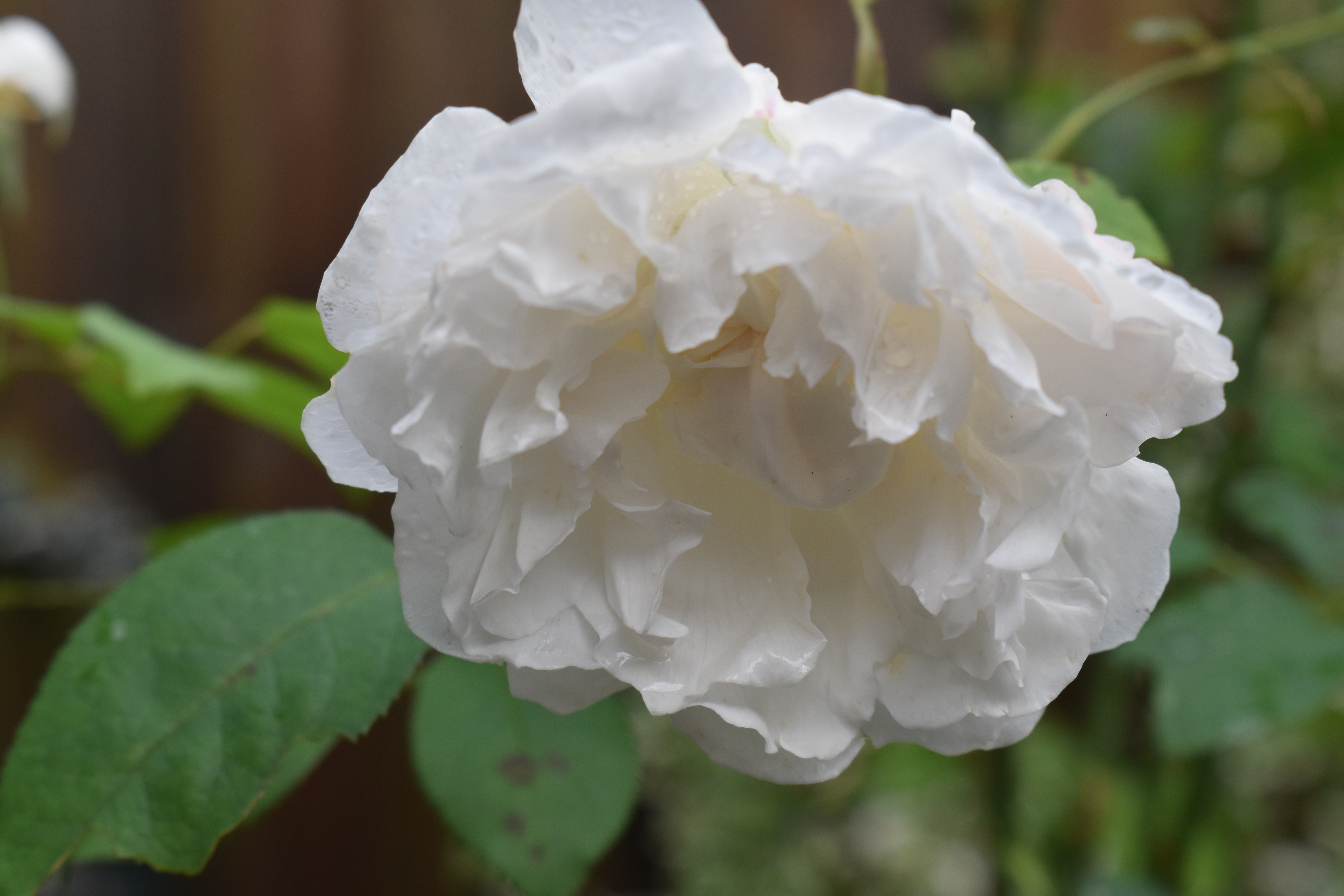 Over onto the next pair of pages I shared photos of fatsia and late flowering roses. On the left hand page I wrote, “The palmate leaves of our two different fatsias look good all year round being a deep glossy green with new leaves unfurling beautifully, but come Nvember their unusually structured flower clusters begin to burst into life. They attract late-flying pollinators.”