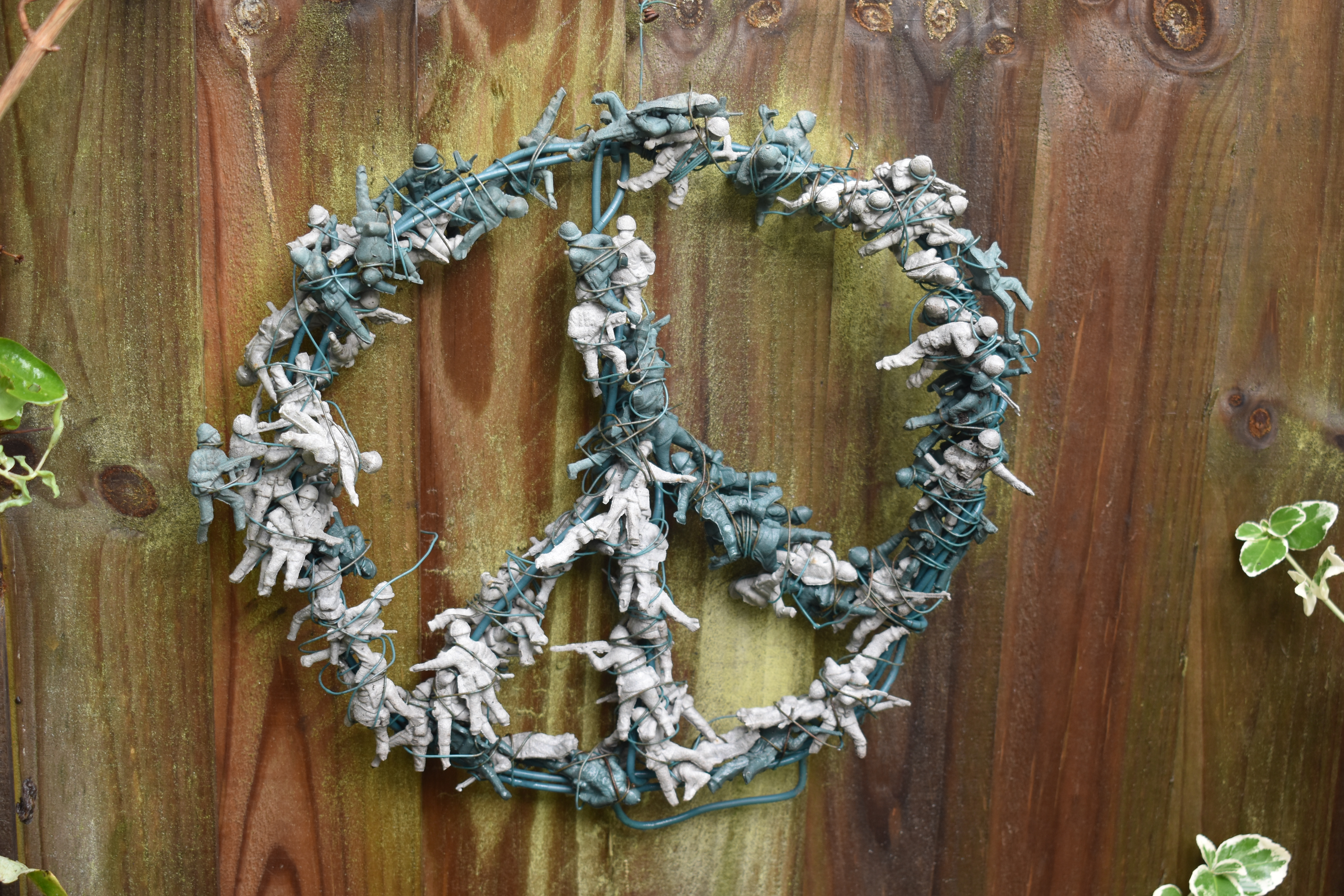 The newest piece we have is a Tree of Life, a lovely metre wide and laser cut from a sheet of corten steel and it fits well where we have fixed it up on our pale cream coloured house wall. It presents as a viewpoint from down our central path looking up from the bottom fence of the back garden.