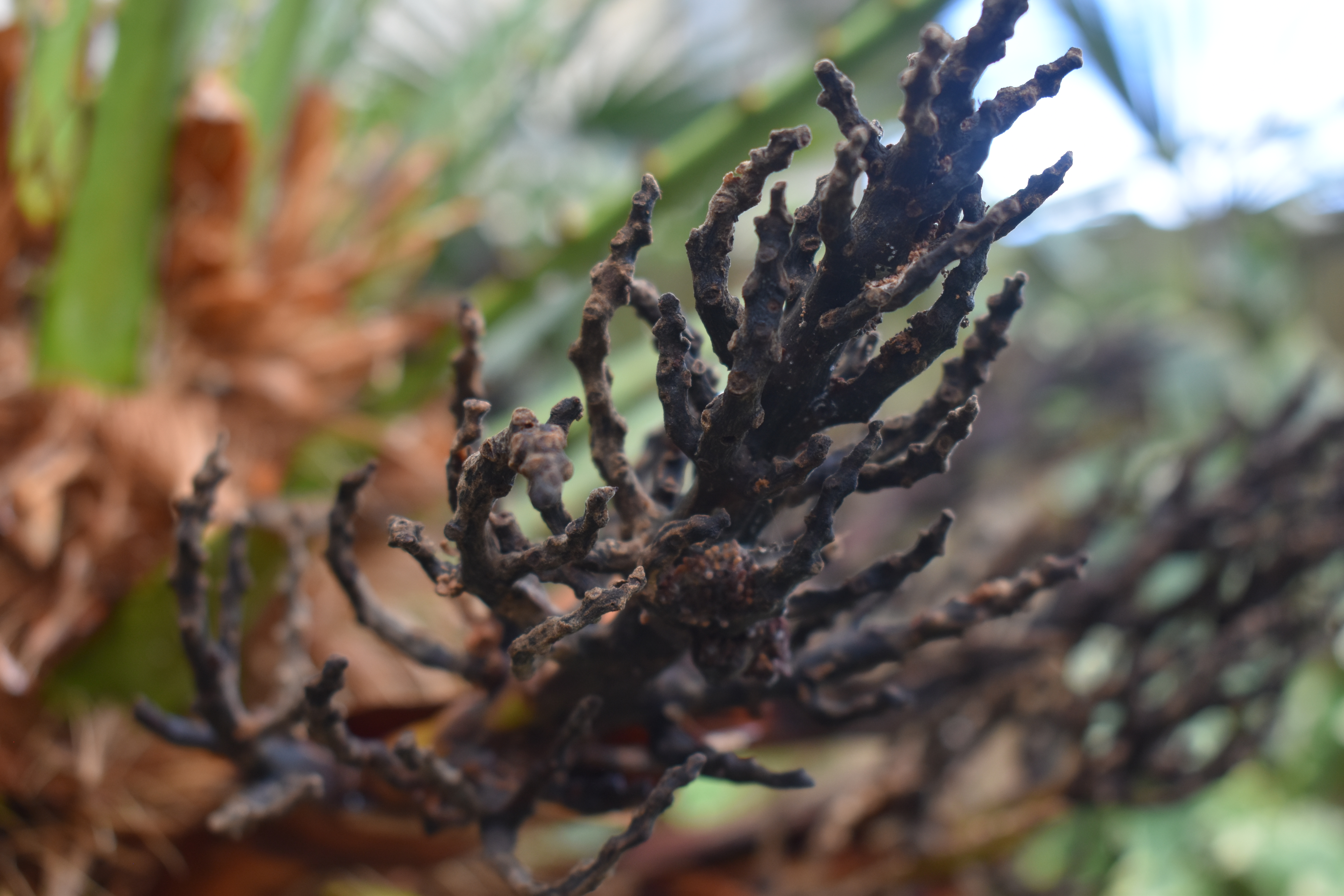When writing about our unusual variety called ‘Greenfingers’ I wrote, “The more palmate leaved fatsia called ‘Greenfingers’ has not flowered for us yet.”