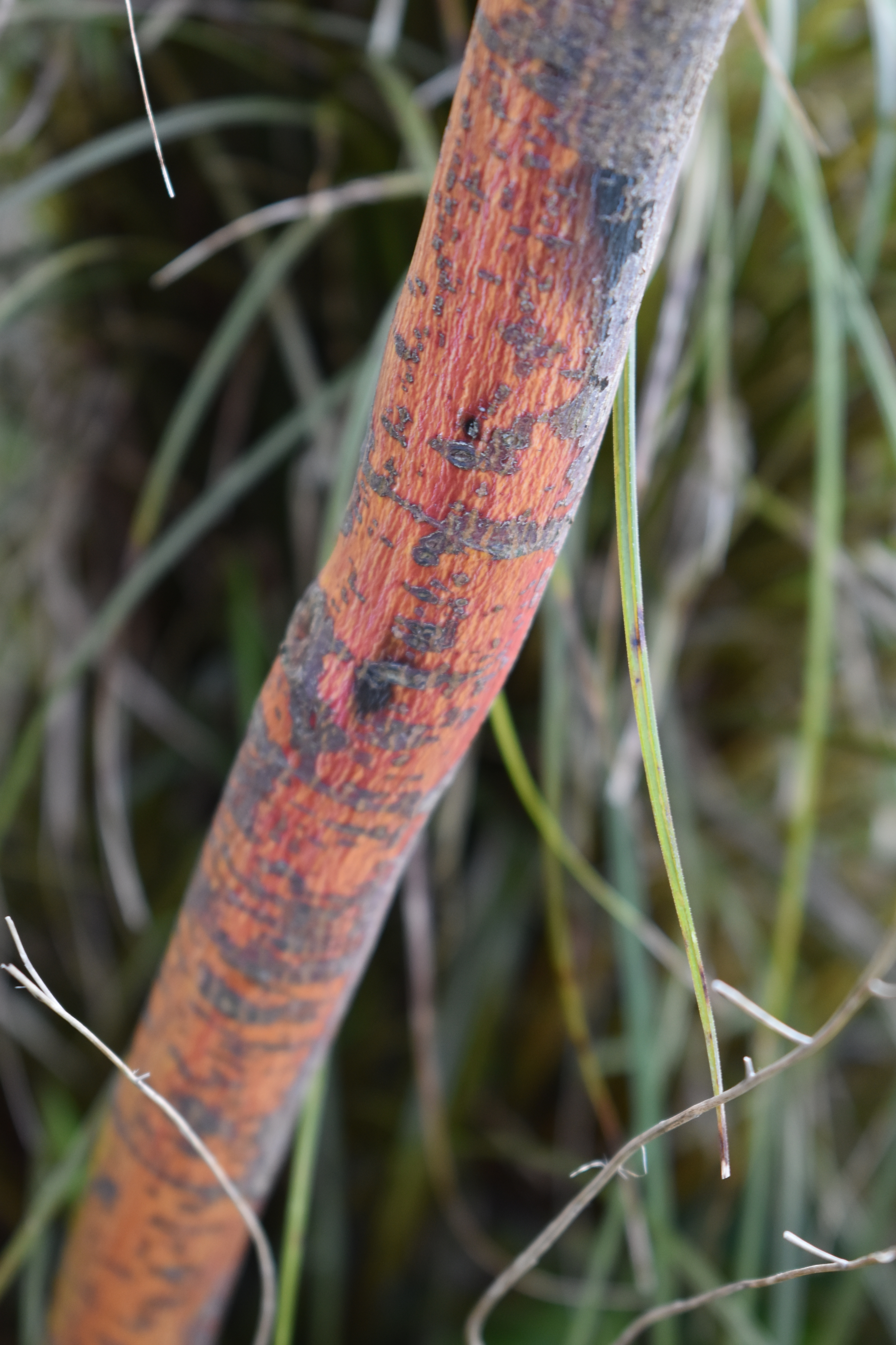 This walk proved an excellent place to do just that. Early on into our walk we came across a huge specimen tree covered not in mosses or lichen but in our native Ivy, Hedera helix, a brilliant shelter, food source and breeding place for all sorts of wildlife. Not long after we found a tree coated near its base in moss. But it also displayed covering by an orange-brown lichen above the moss.