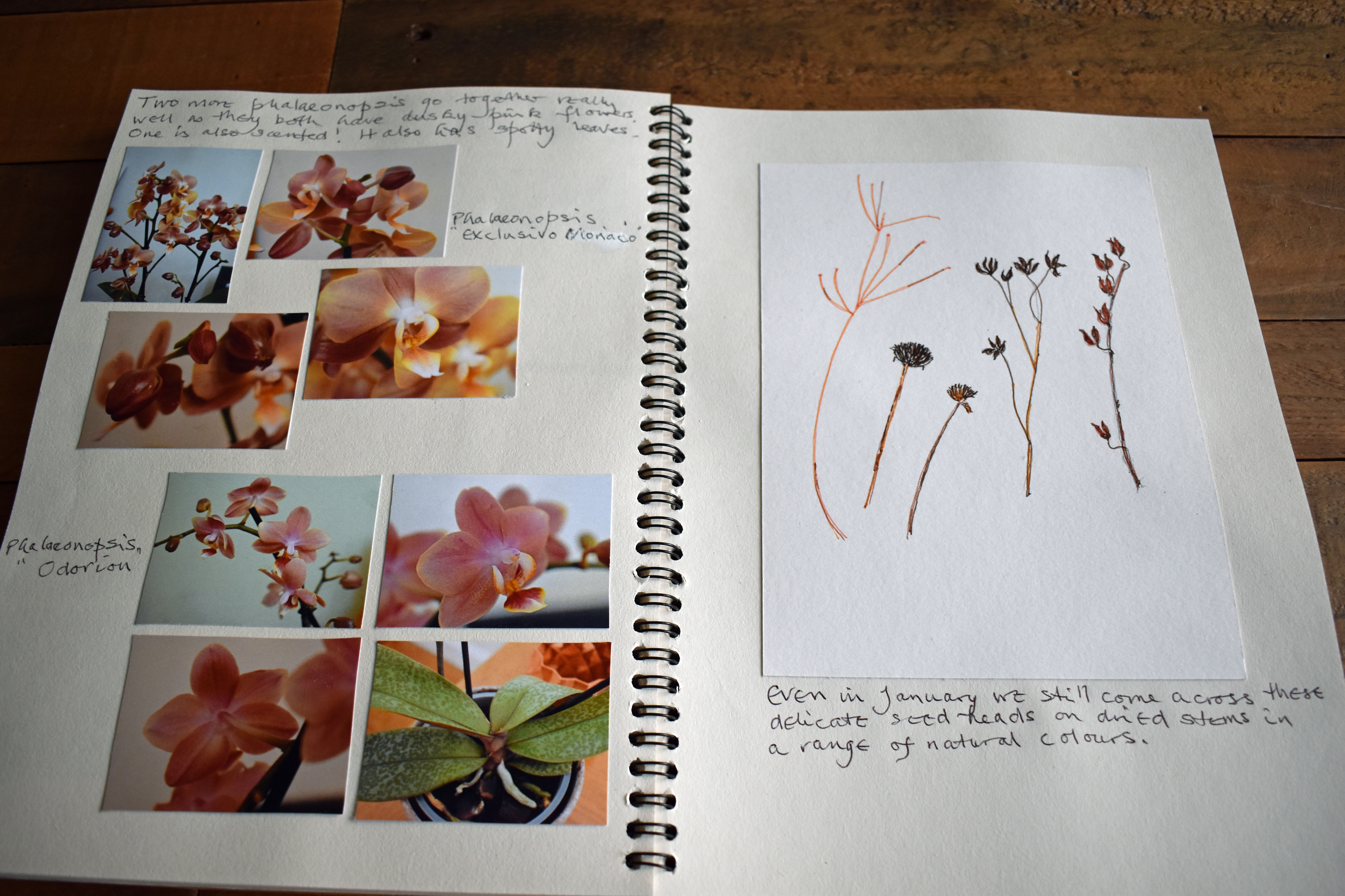 On the opposite page I wrote, “So much March colour in our garden comes from the blossom on fruit trees, and our several flowering trees and shrubs.” Then below I shared a set of photos as examples.