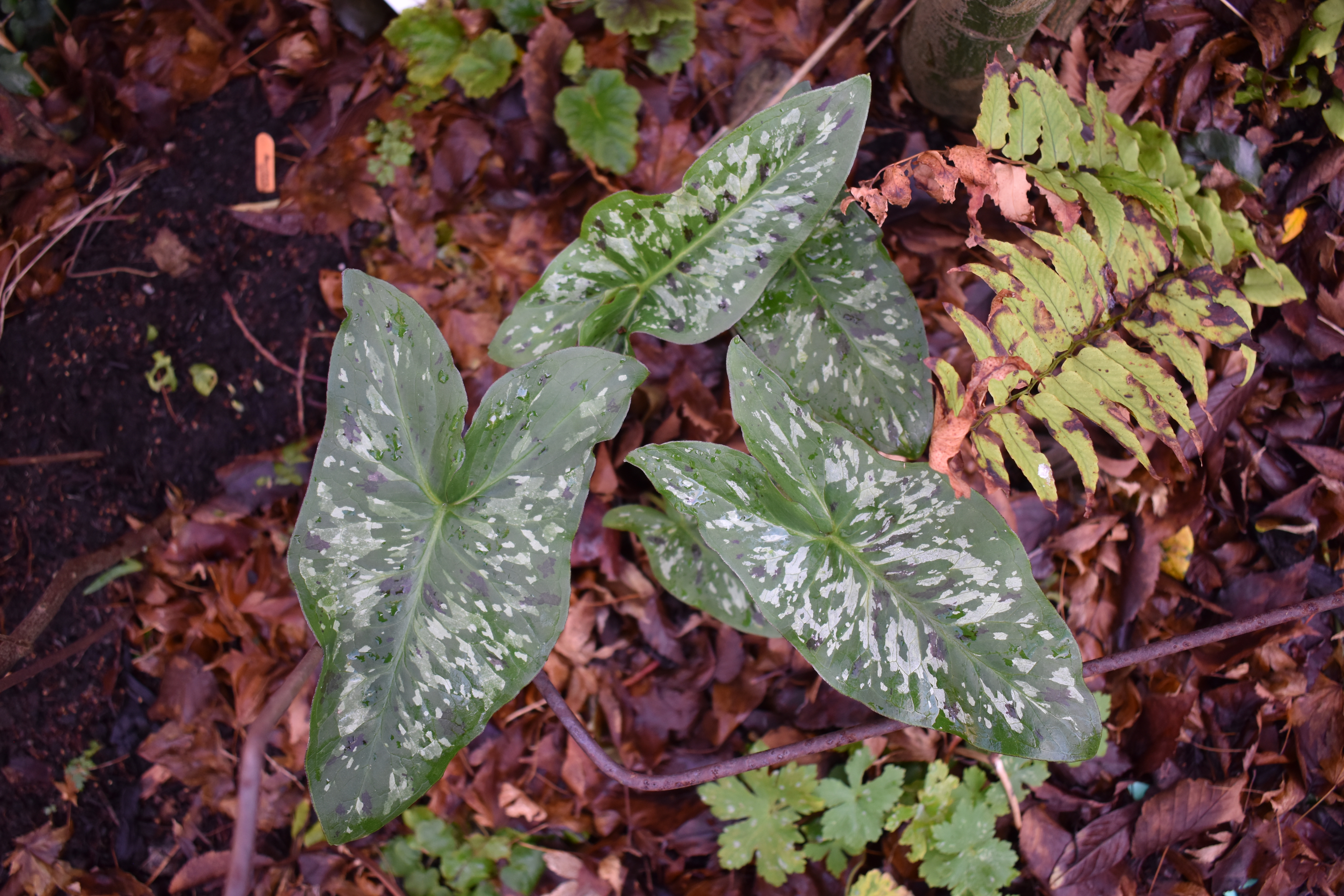 Cutting down the perennials that we leave standing throughout our borders. They look good but also provide winter shelter for wildlife during unfriendly periods of winter weather. The photo on the right shows Jude with the tallest flower stalk we have ever seen in our patch.”
