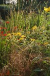 We were really pleased to find this stunning plant which features in the next batch of photos. We thought it as a rudbeckia but with its deep red stems, beautiful dark foliage and such delicate flowers we didn’t know which one, but what we did know was that we needed one for our garden, imagining how well it would sit in our hot border. So I took a couple of photos and went to seek out Joe who I confidently felt would proffer its name without even having to think about it, but when I showed him the photos on the back screen of the Nikon he referred me to Wendy as she was better at the non-woody members of their garden. So off to find Wendy who looked at the photos and also looked blankly, her memory having failed her. But being organised she had a planting list for each border and we soon discovered that it wasn’t a Rudbeckia at all, it was a Heliopsis “Summer Nights”. So it is down to us now to seek it out for our hot border.