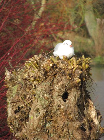 A short amble from the Mere is the diminutive Janet Kear Hide, which overlooks an intimate pool surrounded by small leafless trees, mostly willow and hawthorn. Here feeding stations have been set up to give close up views of the reserve’s smaller birds. Greenfinch, Goldfinch and Chaffinch dominate, feeding busily on the mixed seeds, with Great Tit and Blue Tit attracted to the peanuts in the hanging feeders. A real treat was the number of Reed Bunting using the feeding station. At Slimbridge we were excited to spot one, here there were dozens.