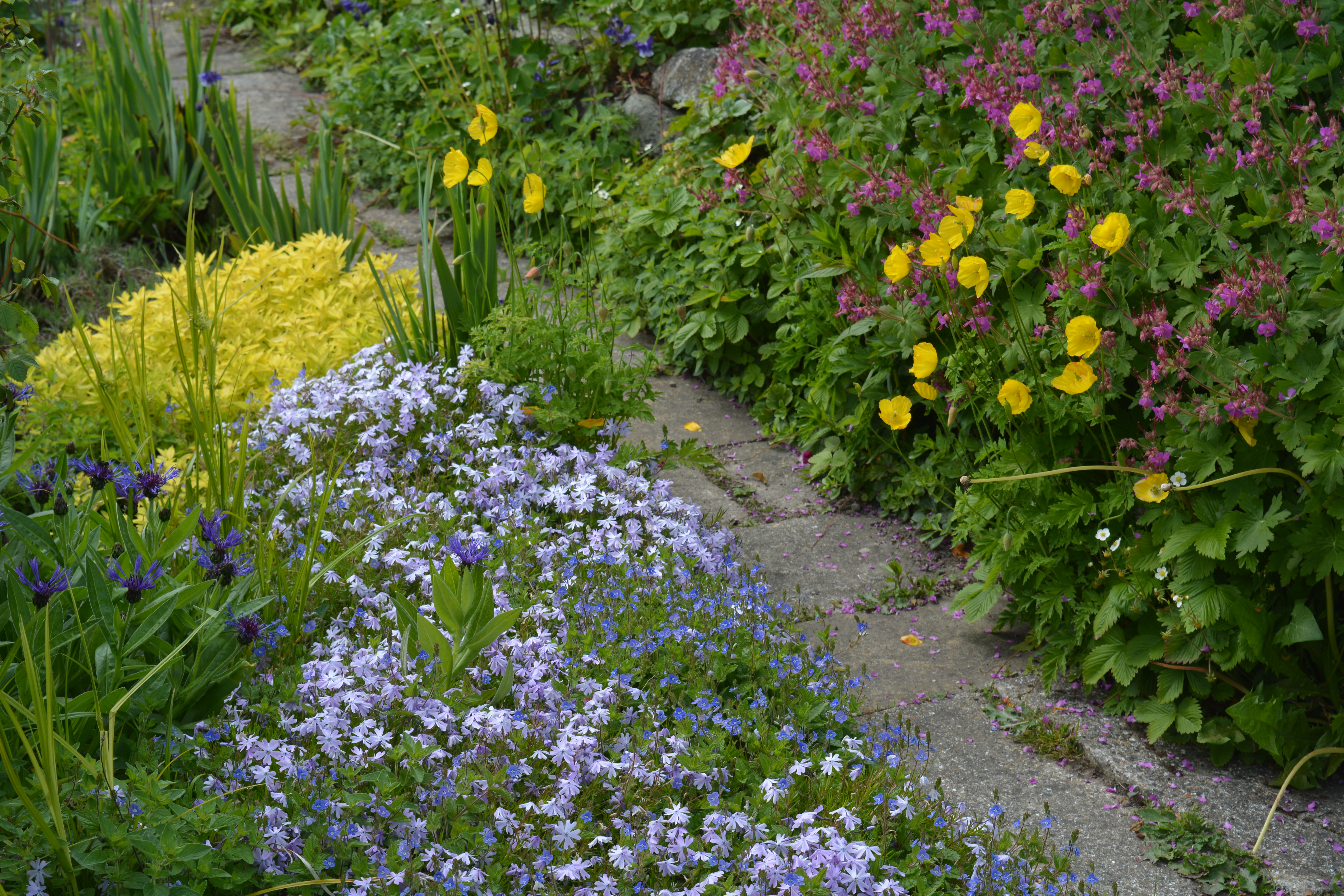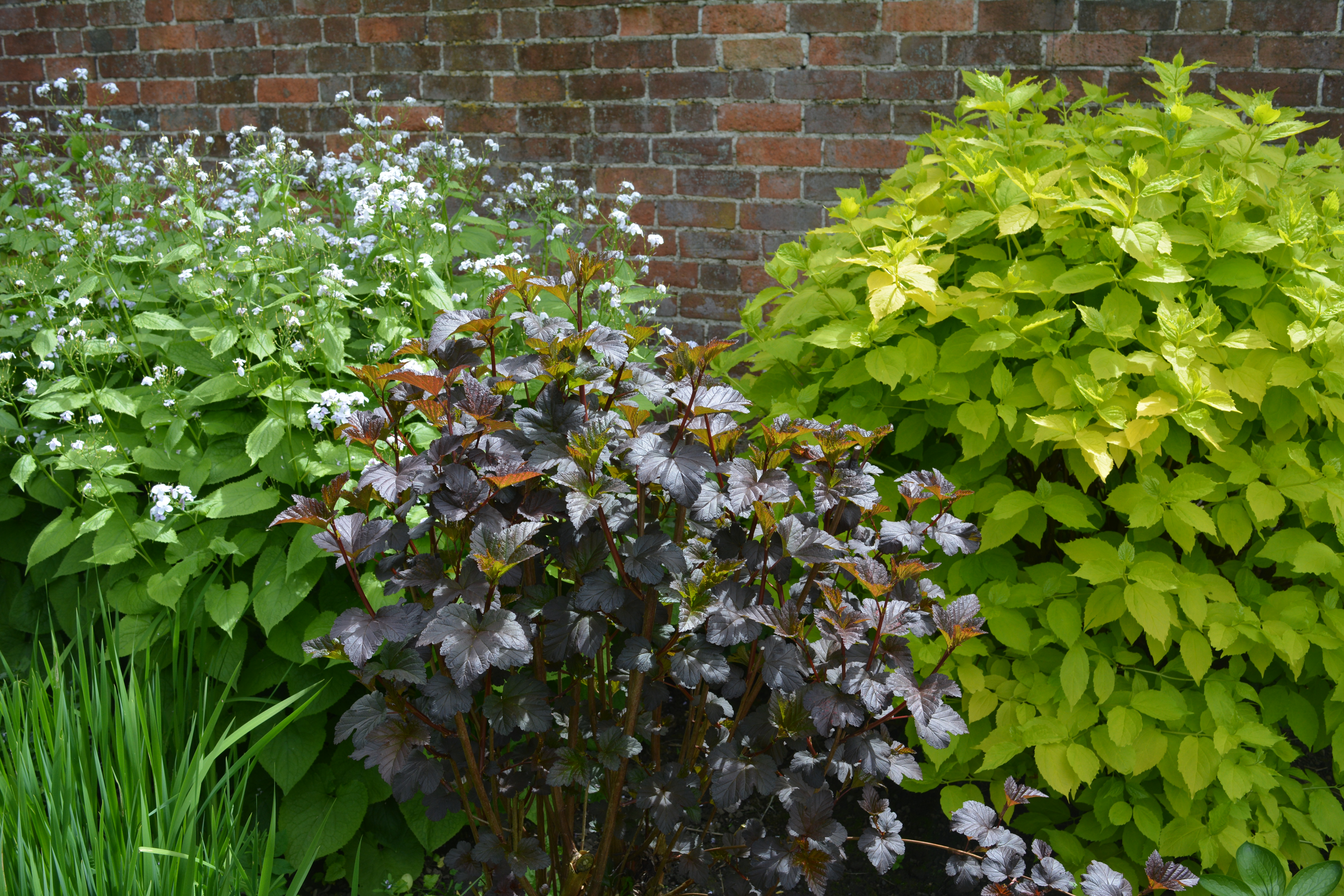 In recent years a rectangular border alongside a tall stone wall has changed completely becoming a hot border, full of flowers and foliage the colours of fire. On a sunny day they really light up.