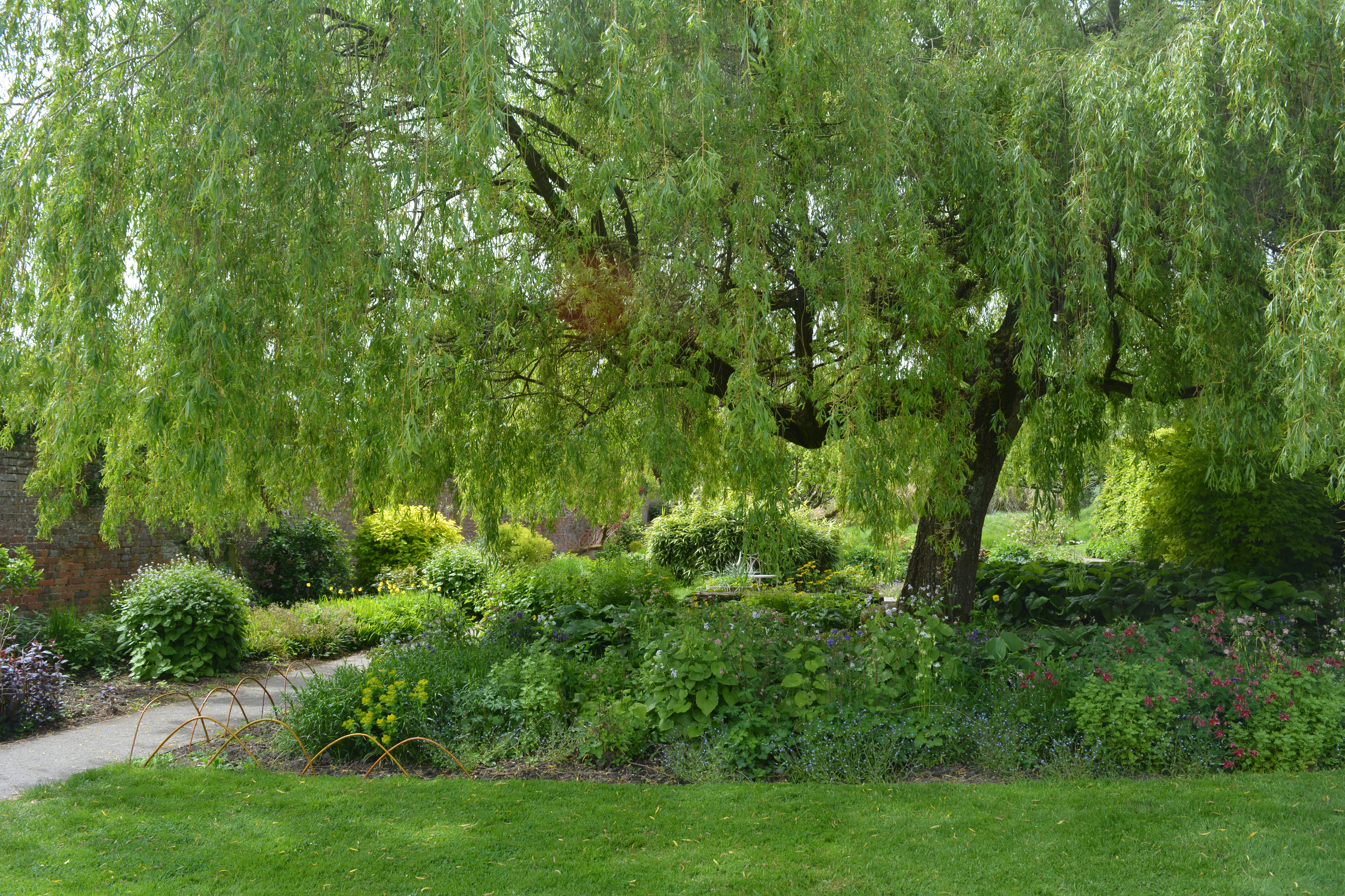 The narrow gravel paths take us into the shady areas beneath mature deciduous trees. Bluebells added a blue mist to the rich green grassed areas.