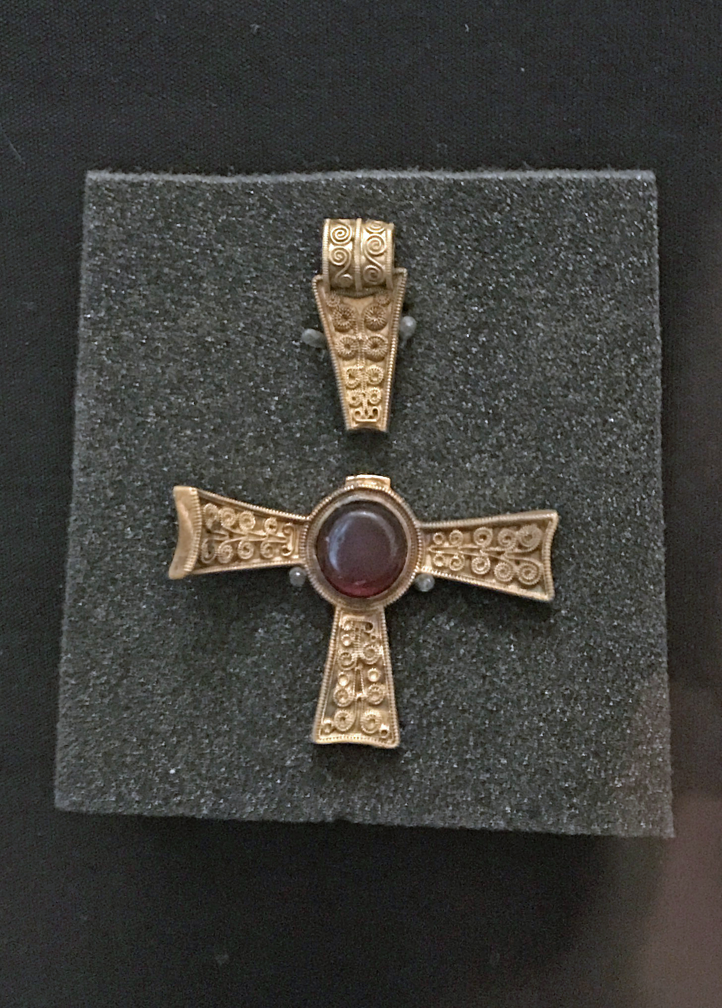 The chancel was impressive because of its high vaulted ceiling and medieval painted walls. We were lucky to visit at a time when there was a display of artifacts from the famous “Staffordshire Hoard”. We were amazed by the beauty of the objects and how tiny but detailed they were.