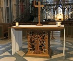 Truly modern design exists in the wooden furniture used by the Bishop and his cohorts. Clean lines and pale wood create beautiful sculptural pieces. Fine examples of beauty working with function.