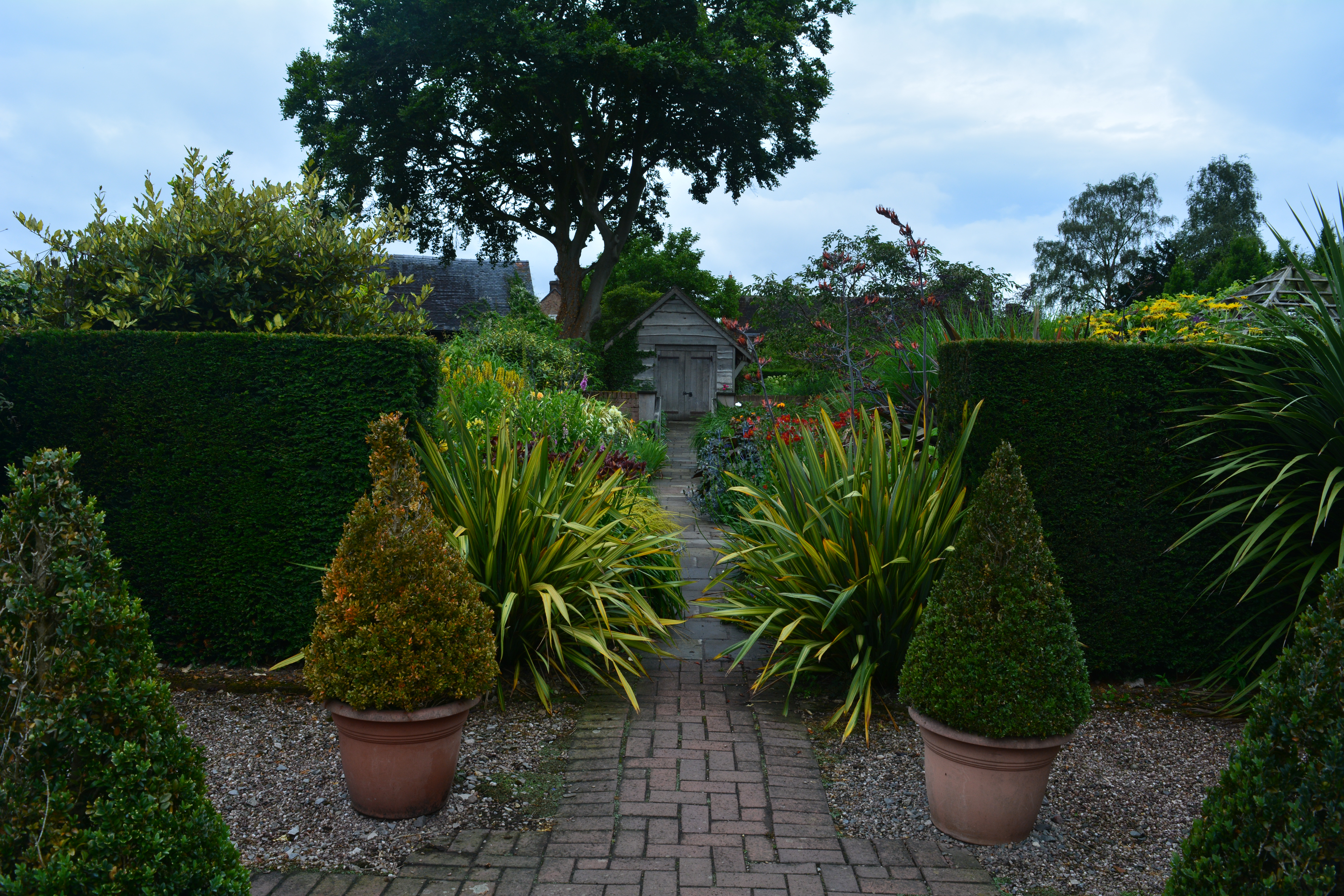 Box cut into shapes and hedges of box and yew give strong bones to the garden and help lead the eye and focus on important elements.