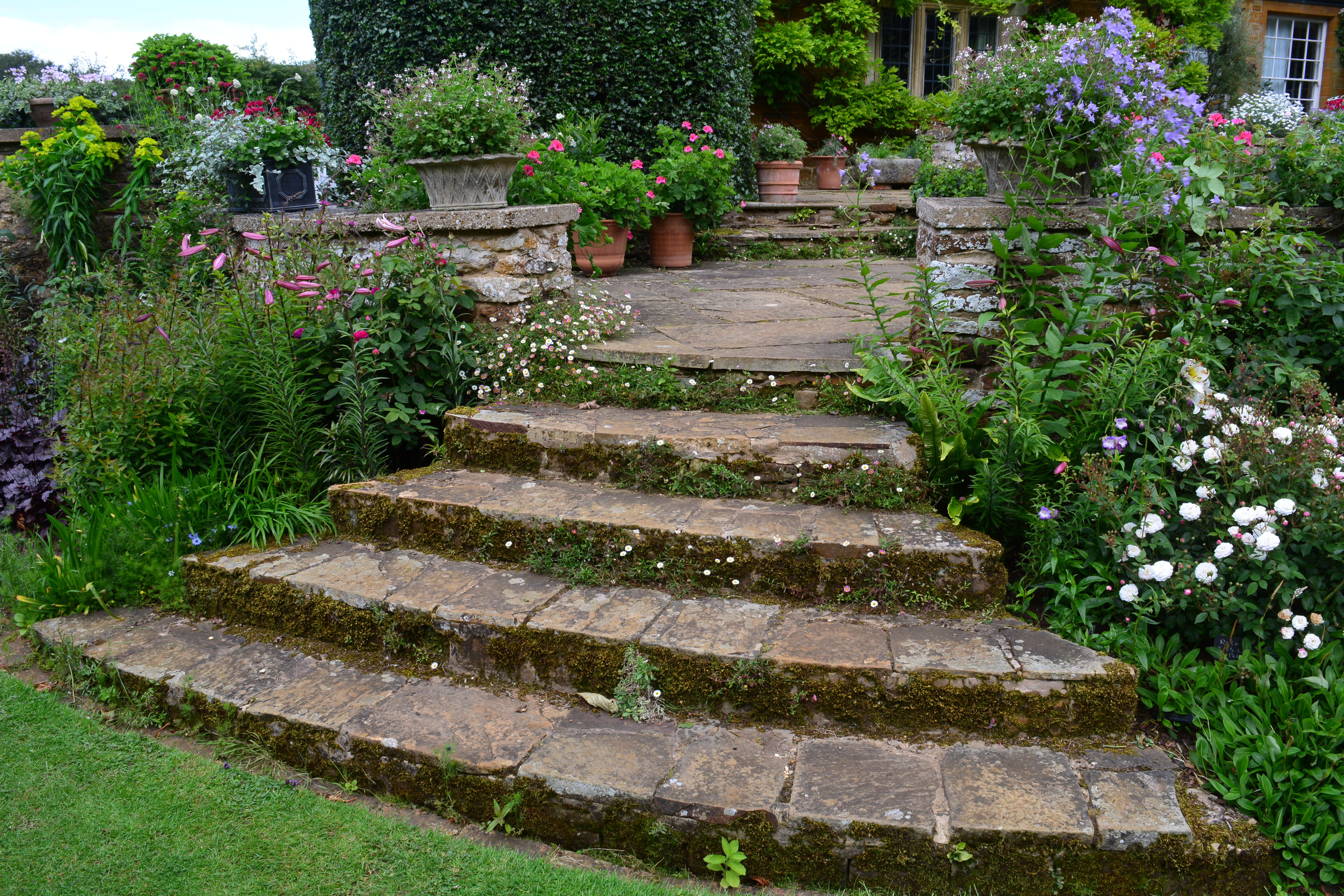 Steps, paving and walls of warm limestone appeared throughout the garden affording ideal places for wall plants to get a hold.