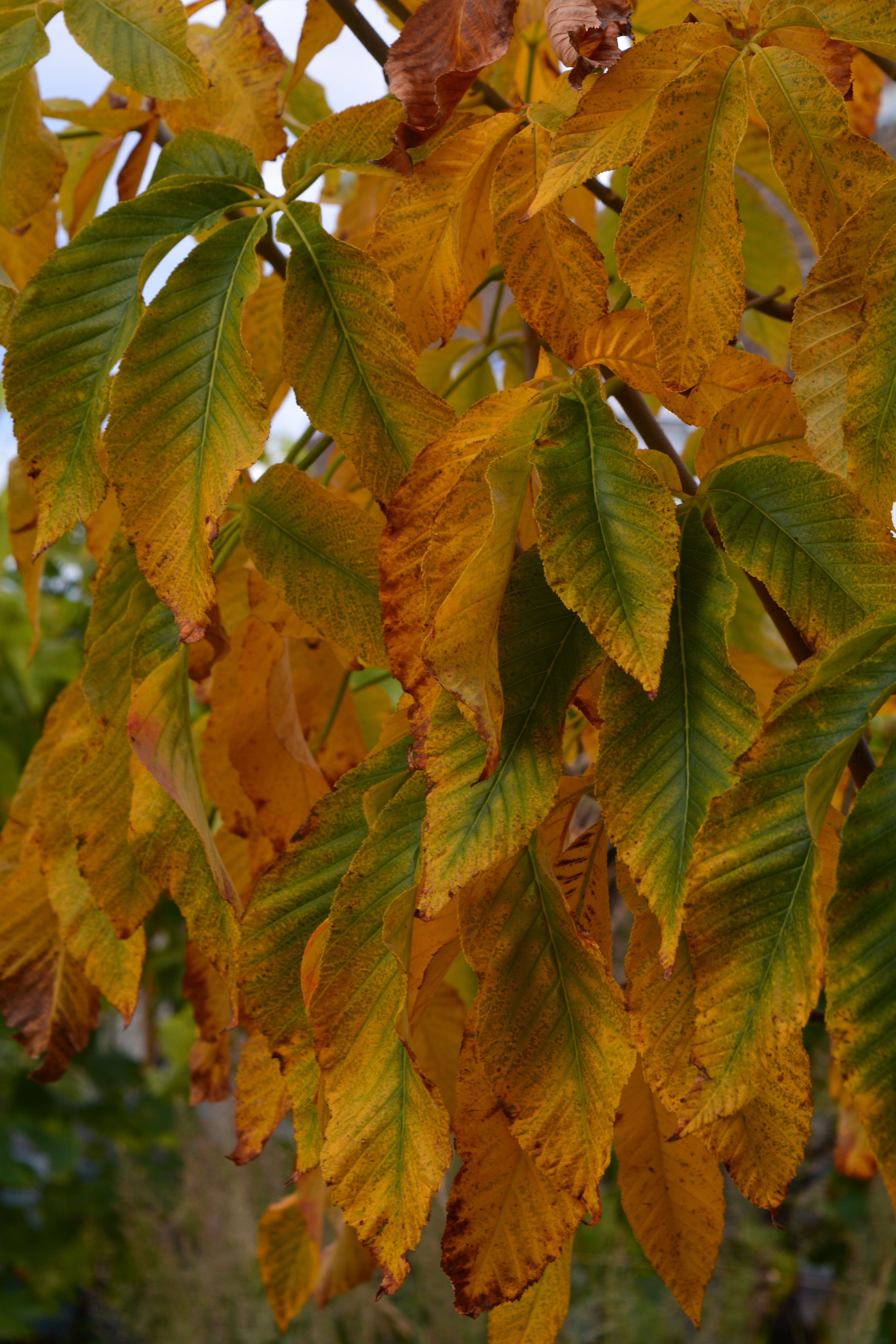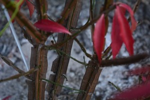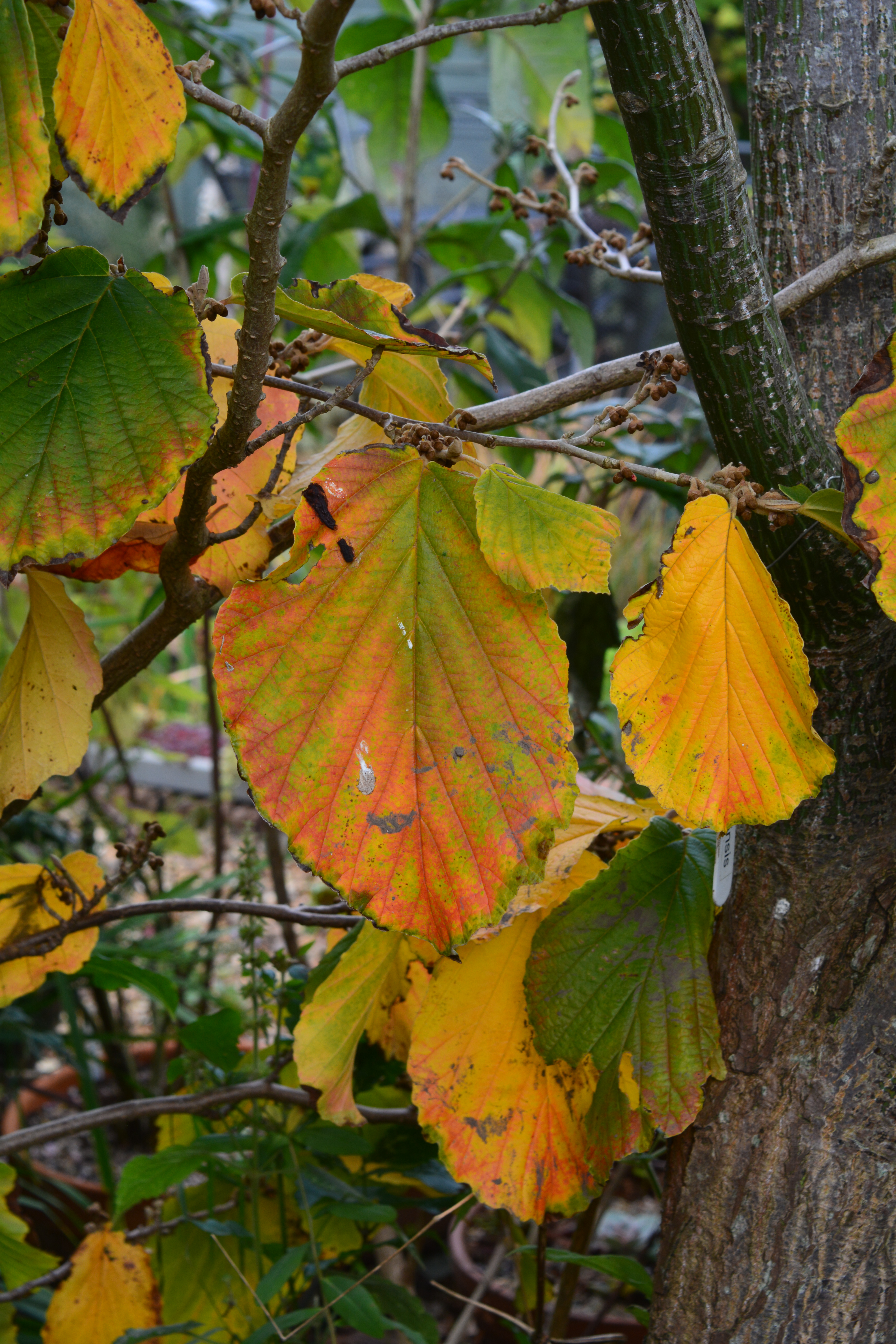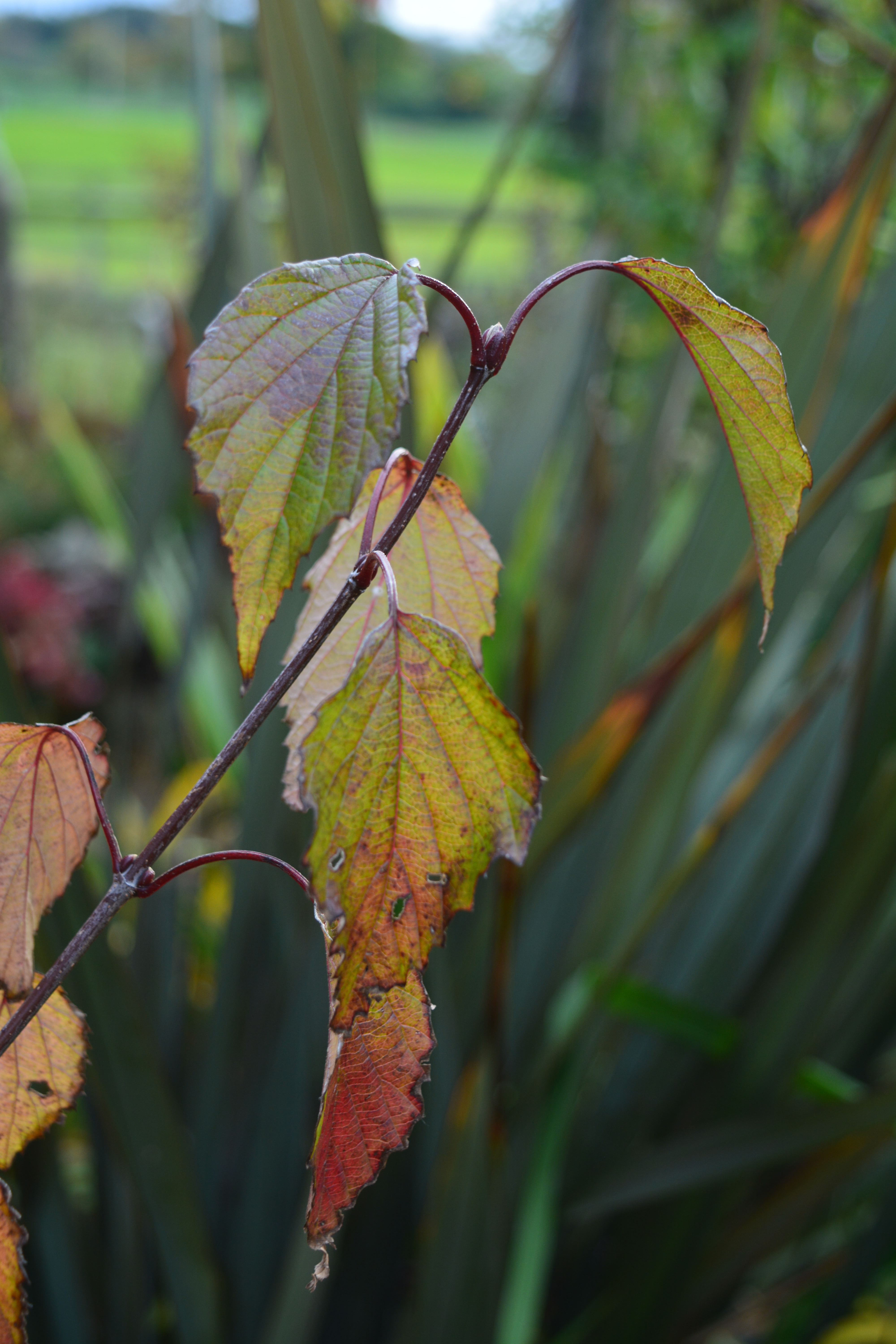 The final photo is of the foliage of a special small tree, a viburnum with leaves which make you think it is a betula at first sight. “The leaves of Viburnum betulifolium change colour so slowly with subtle deepening from bronze to dark red.”