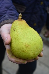 Sometimes fruit can surprise us. “This year saw us grow the biggest pear we have ever seen. Jude has now put our apples in store and I have printed new labels for every apple tree. The next stage will be to enjoy eating our apples from storage and then next spring the blossom will return.”