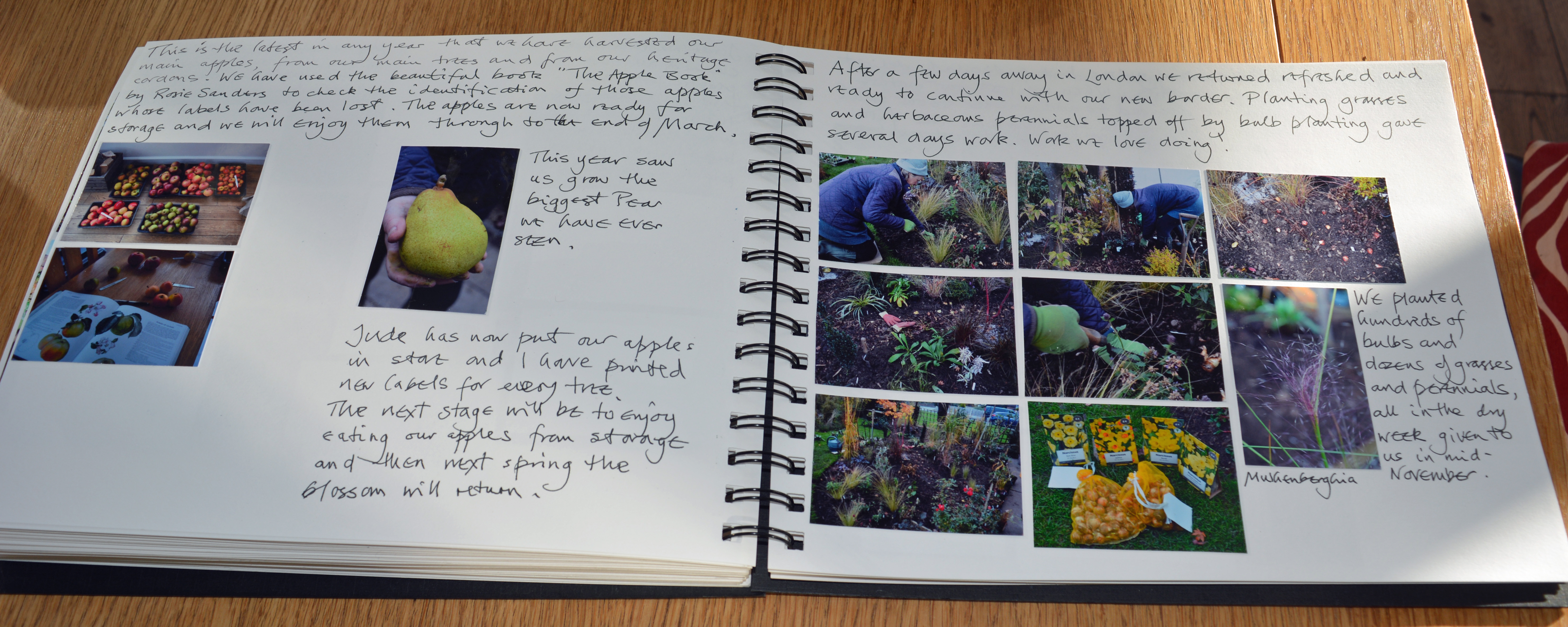 My diary moved on to look at us planting up the newly created border which used to be our Hot Border, “After a few days away in London we returned refreshed and ready to continue with our new border. Planting grasses and herbaceous perennials topped off by bulb planting gave us several days work. Work we love doing!”