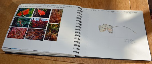 The colour orange features on the left hand side of my next double page spread, where I look at the variety of orange featuring in our November garden.
