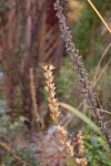 I have decided to single out one plant which has started flowering just the last few days whereas its cousins flowered months ago. It is a Toad Lily – Trycirtis hirta variegata. The flowers are much paler than our other varieties of Trycirtis but they do still have the lovely marking typical of the family. Flowering this late does mean though that the flowers are viewed against foliage that is not at its best, with the gold edged variegation looking very faded.