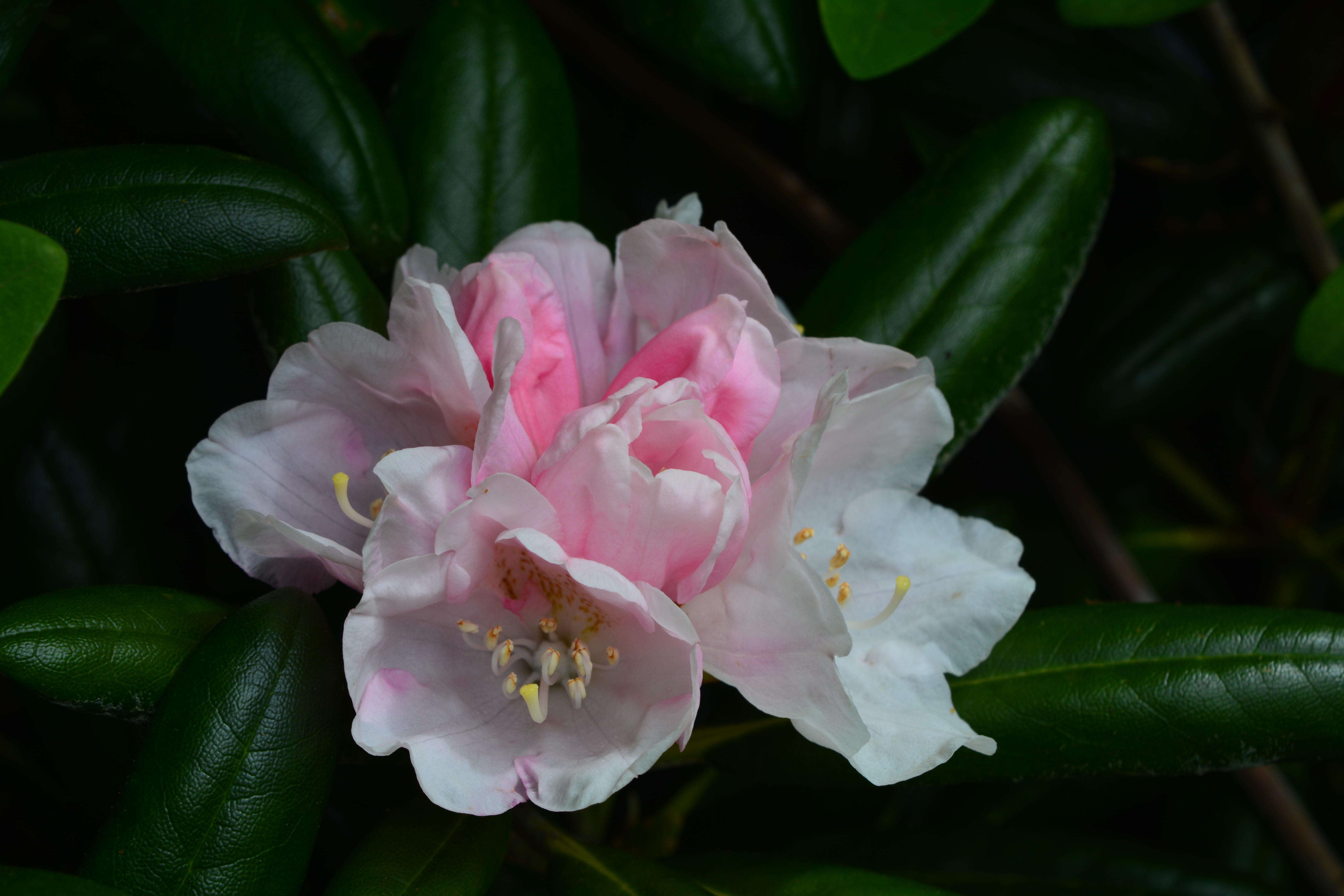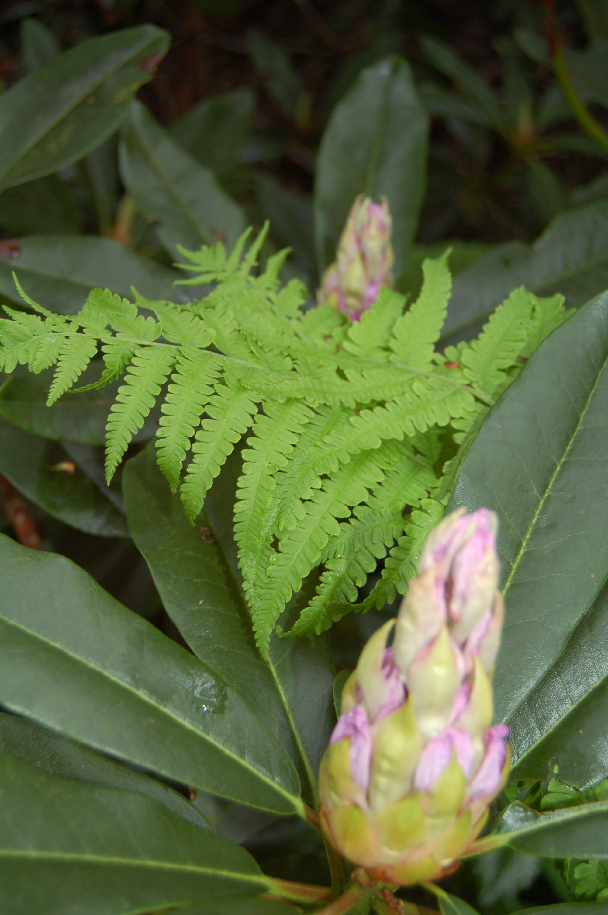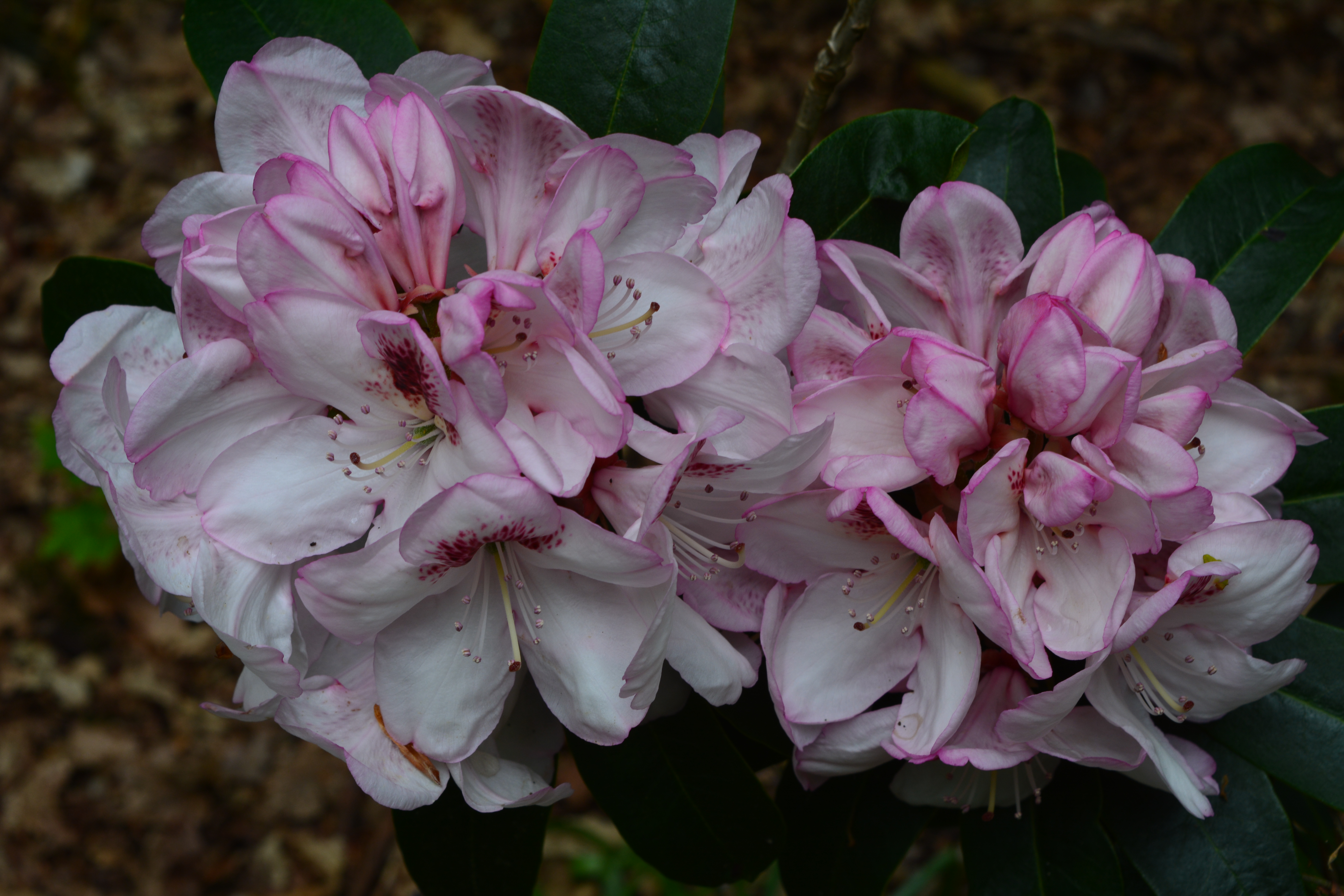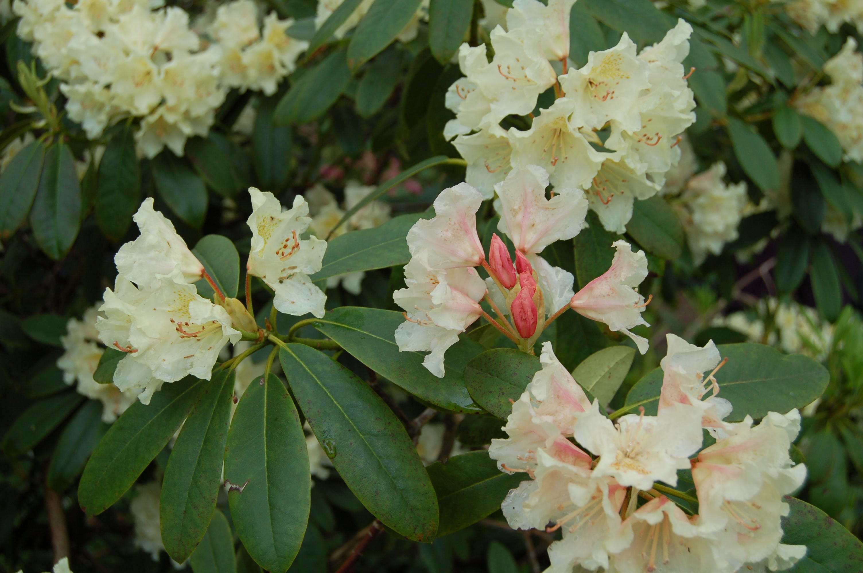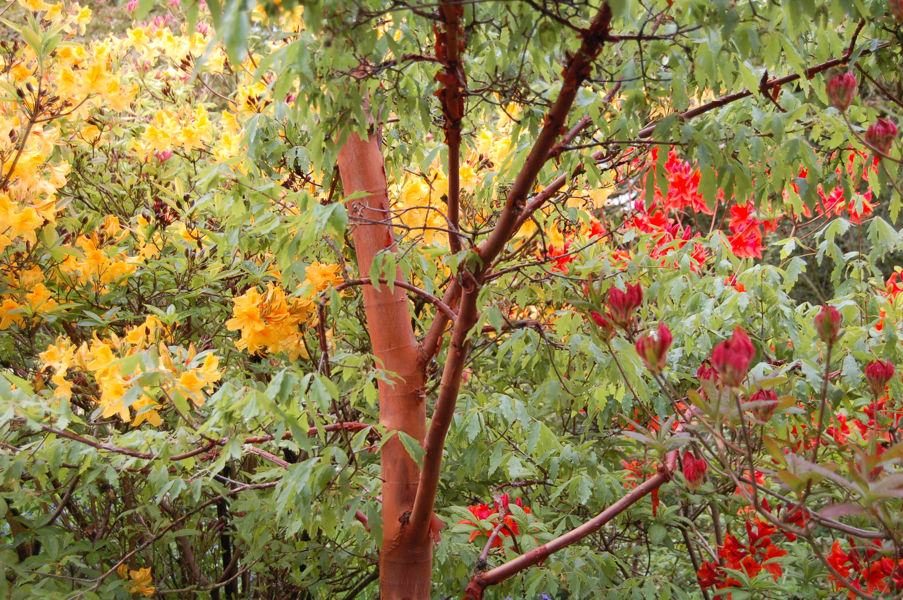 The brightest flowers were on this orange deciduous azalea. We like the deciduous varieties far more than the evergreens and grow a few in our own garden.