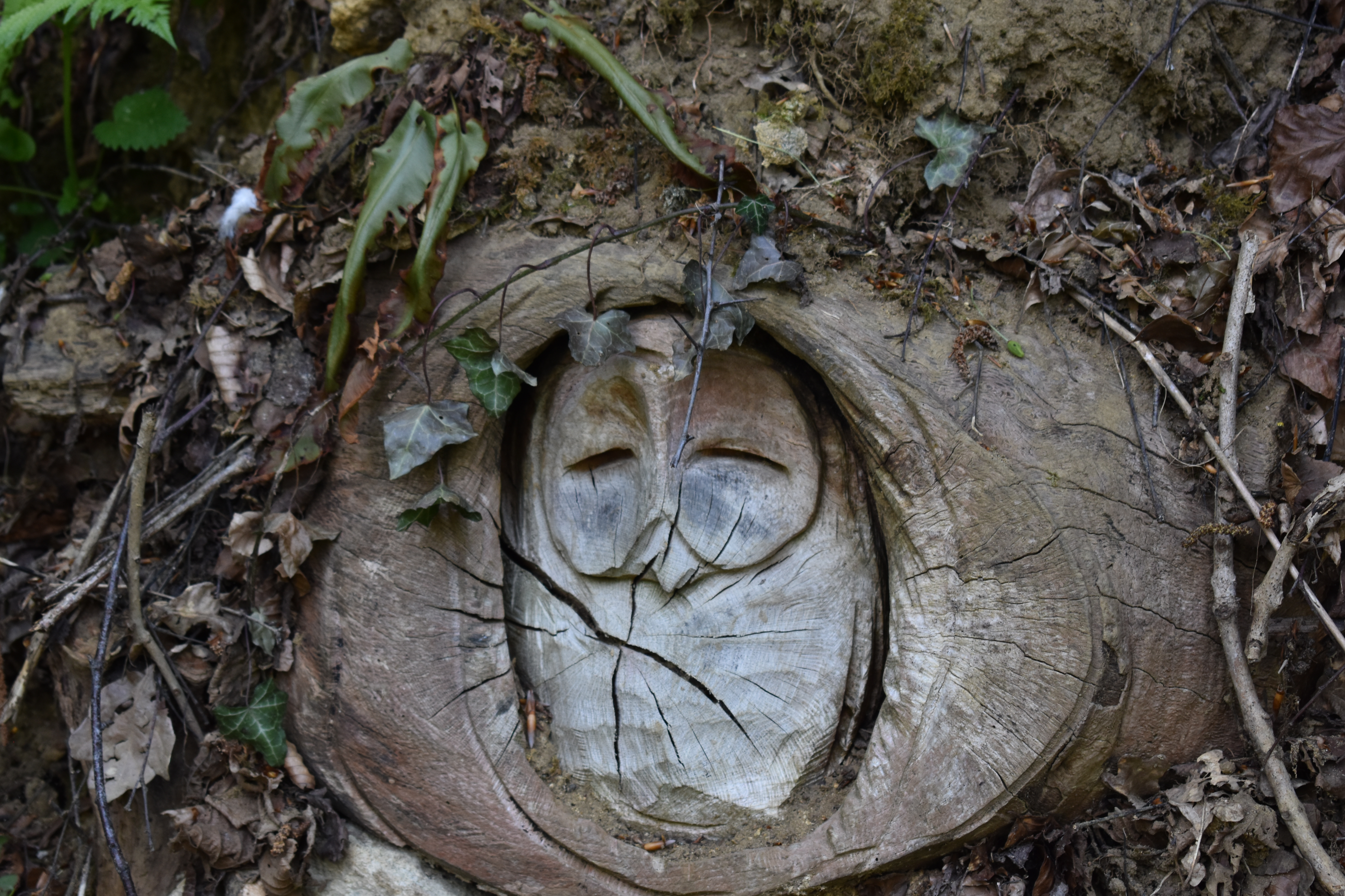 In any woodland there are unexpected delights that attract our eyes, a burl on a tree trunk, or a carved tawny owl on another tree trunk or ferns decorating tree roots alongside the track.