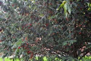 Although not great fans of coniferous trees we can appreciate them more in December when their heavy skeletal frameworks show well. Cones and the last of the flowers hang on their solid branches.