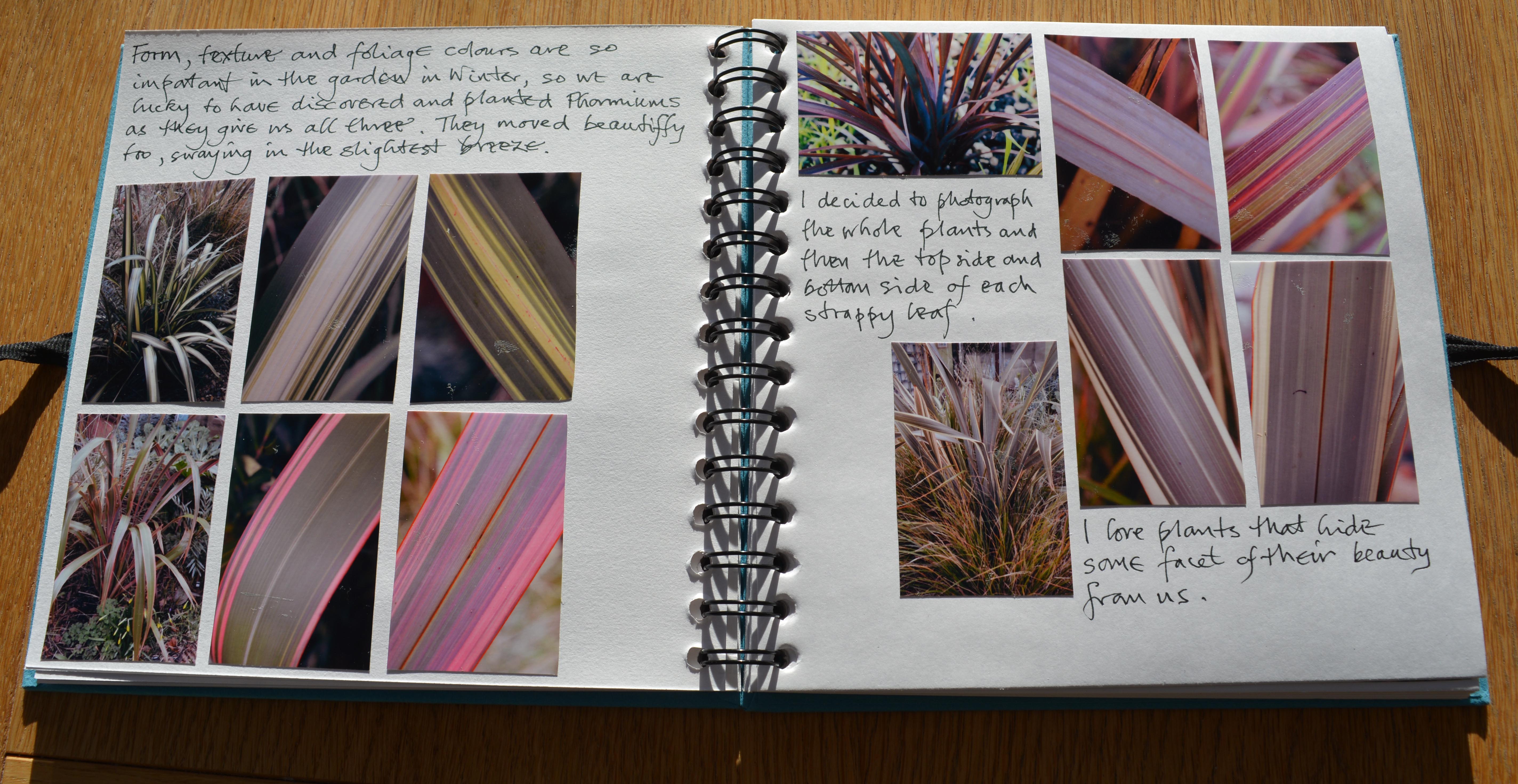 On the opposite page I wrote, “Our native Primroses, Primula vulgaris, begin to flower in February ready to be at their peak in early Spring. Pink “rogue” Primroses appear as self-seeders. Foliage of Primula vulgaris is beautifully textured and patterned.”
