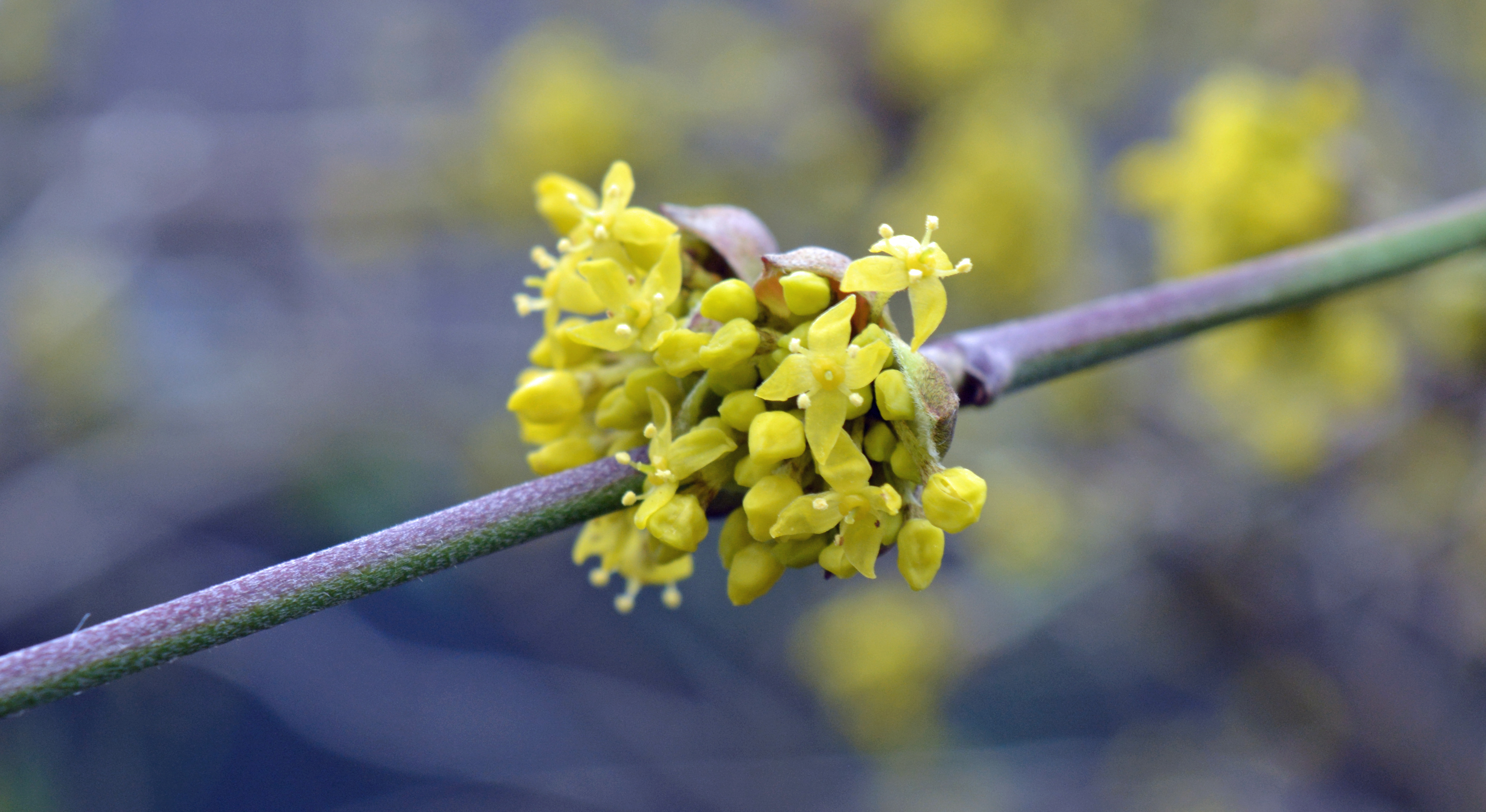 The flowering shrub is Cornus mas, which reliably flowers profusely early every year. I have selected it as my “Plant of the Month” for February. I wrote, “The star of our garden this month has to be Cornus mas, the Cornelian Cherry, with its bright yellow flowers with just a hint of green. We prune off the lower branches and select main boughs to improve the structure of our’s and this also exposes the texture of the bark on the lowest boughs.”