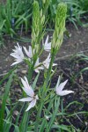 Concerning the unusual Arums we grow I continued, “Arum italicum ssp. italicum “Marmoratum” formerly known simply as Arum italicum “Marmoratum”. This is a tuberous perennial which we grow in our Shade Garden and beneath the shade of small trees. We like them for their foliage, arrow-shaped, extremely glossy and varied in its leaf patterns. Leaves are best described as being “marbled” with white, silver, ivory or cream markings. It flowers in Spring, producing cream spathes and in Autumn vertical columns of bright red berries shoot up to a foot tall. In addition to those attributes, wildlife loves the Arum Lily, bees, butterflies, moths and lots of beneficial predatory insects.”