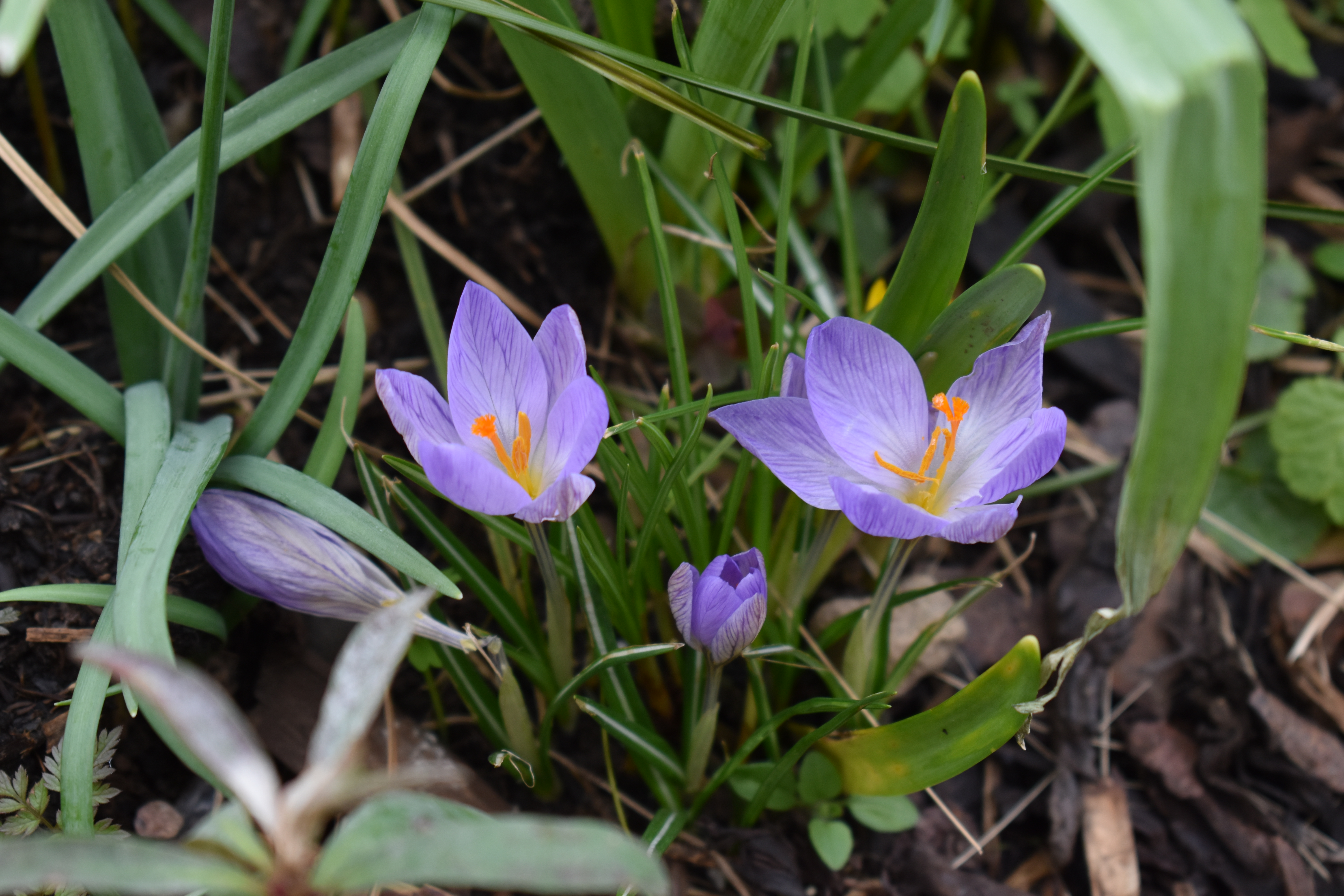 I wrote, “In the second half of the month we had a special treat in store, a few days of heatwave with daytime temperatures reaching 15 C in Plealey. This resulted in rush of new growth from the perennials that had died down after their display last year. The photos show perennial growth with new leaf growth penetrating the soil like the blades of swords.