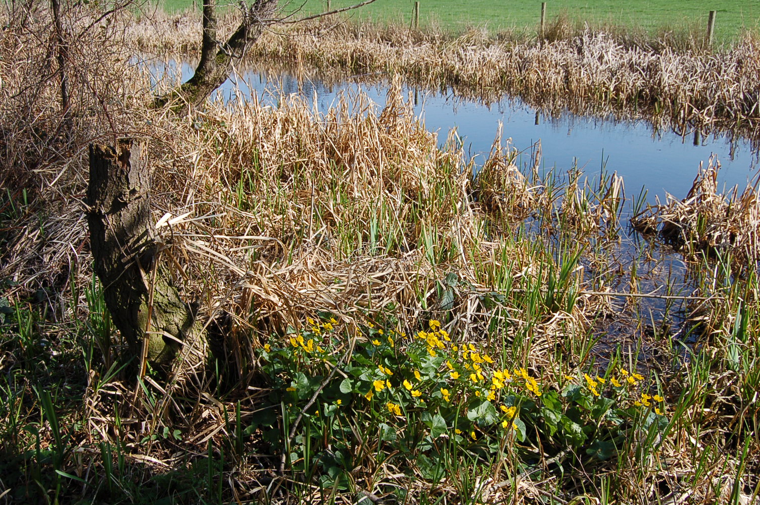 The canal narrowed the closer we got towards the finish of our walk, as the reeds closed in on either side, leaving a narrow winding ribbon of water. This created interesting reflections of trees and fences on the opposite bank.