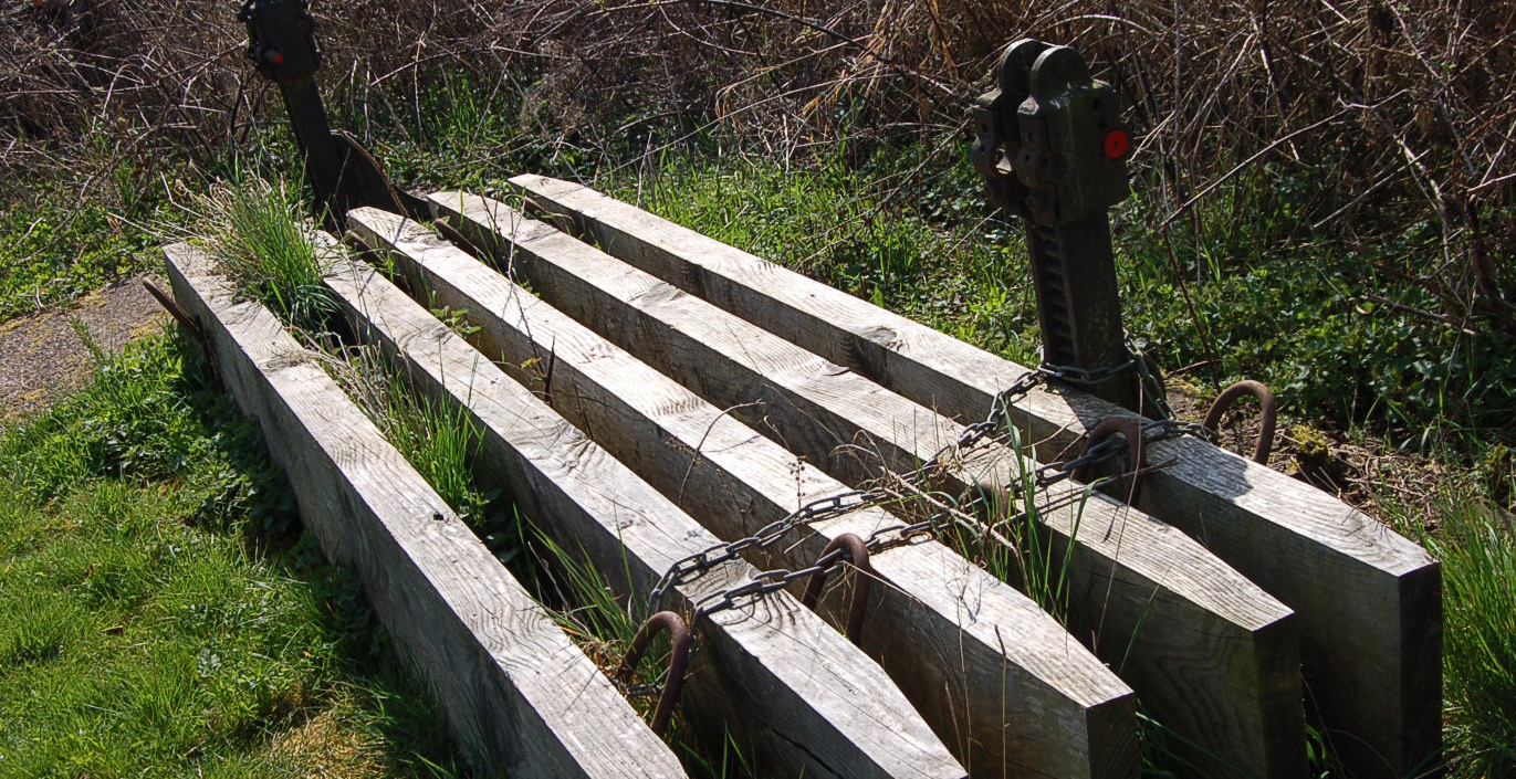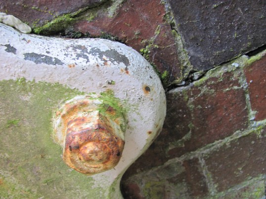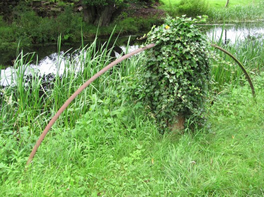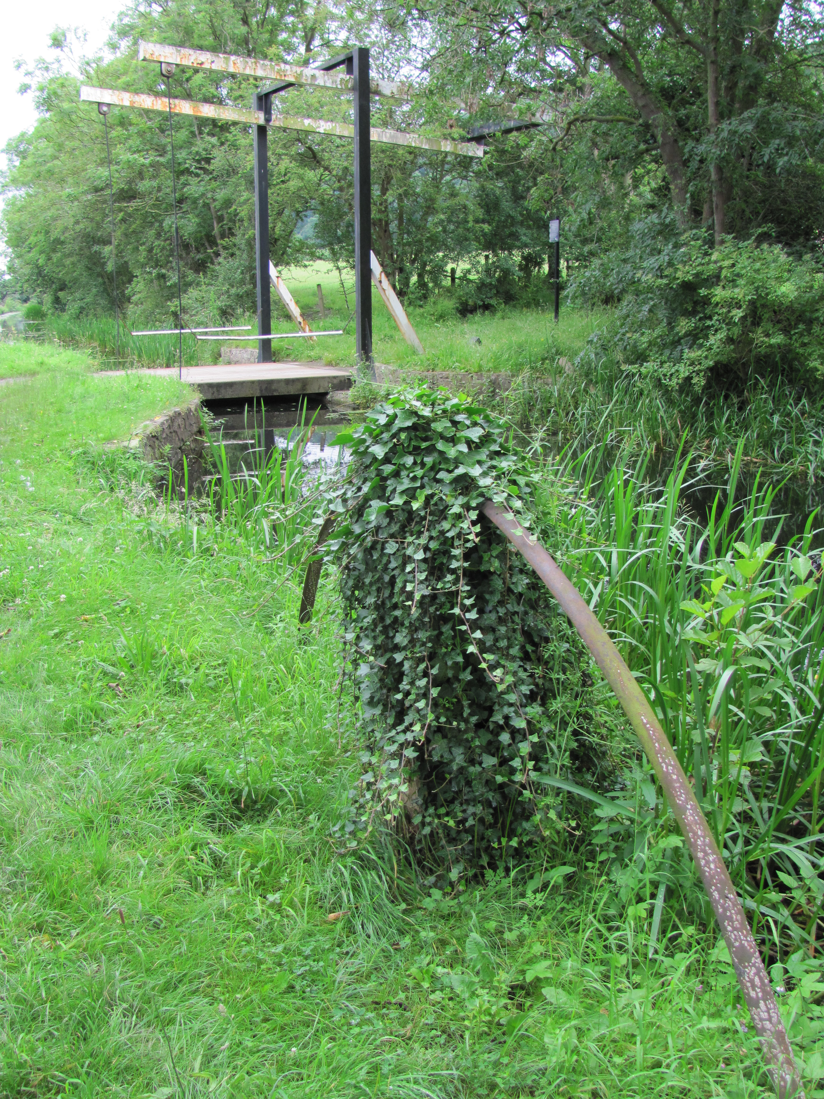 Canalside paraphernalia draws attention along any towpath walk, bringing to mind queries and questions of their uses and names. This first object was a simple arch of iron appearing from the ground and disappearing about a dozen feet further along the towpath. We couldn’t work out what its purpose  could possibly be but it did present a graceful archway in the grass.