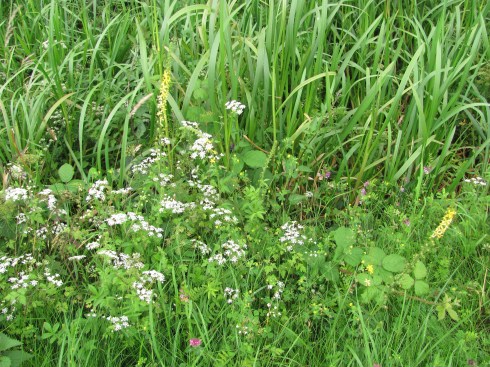 We began just outside the Welsh market town of Welshpool and walked away from the town. As we moved further away more wildflowers were showing themselves, some plants of the hedgerow or woodland edge. They seemed happy living by a canal.