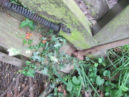 My last ramblings left us just as we retreated into the shelter of the wooded bank of the canal, through the little wooden gate. Inviting as the shelter was I was tempted to linger and photograph the silvered wood and rusted, pitted ironwork on the gate.