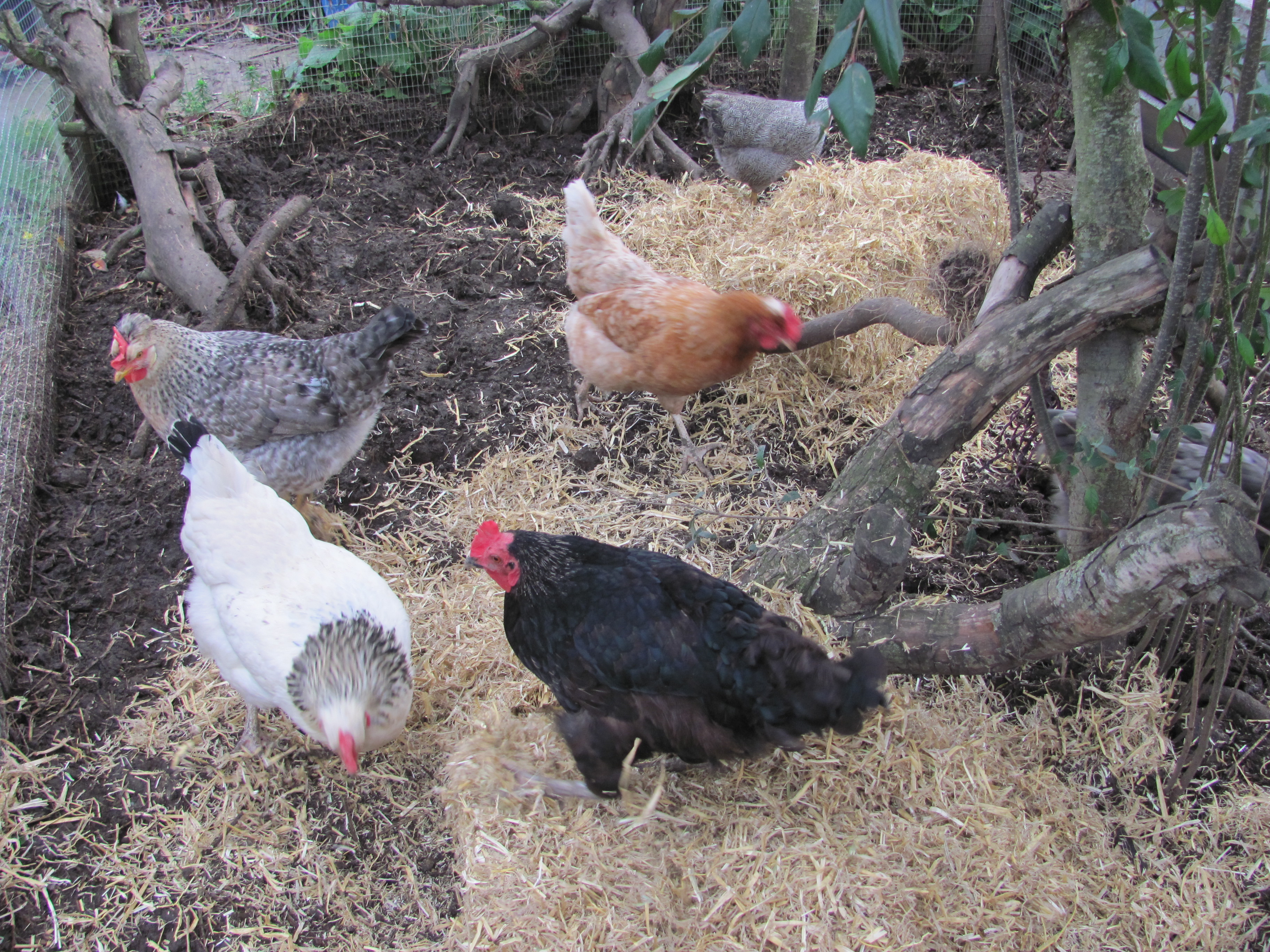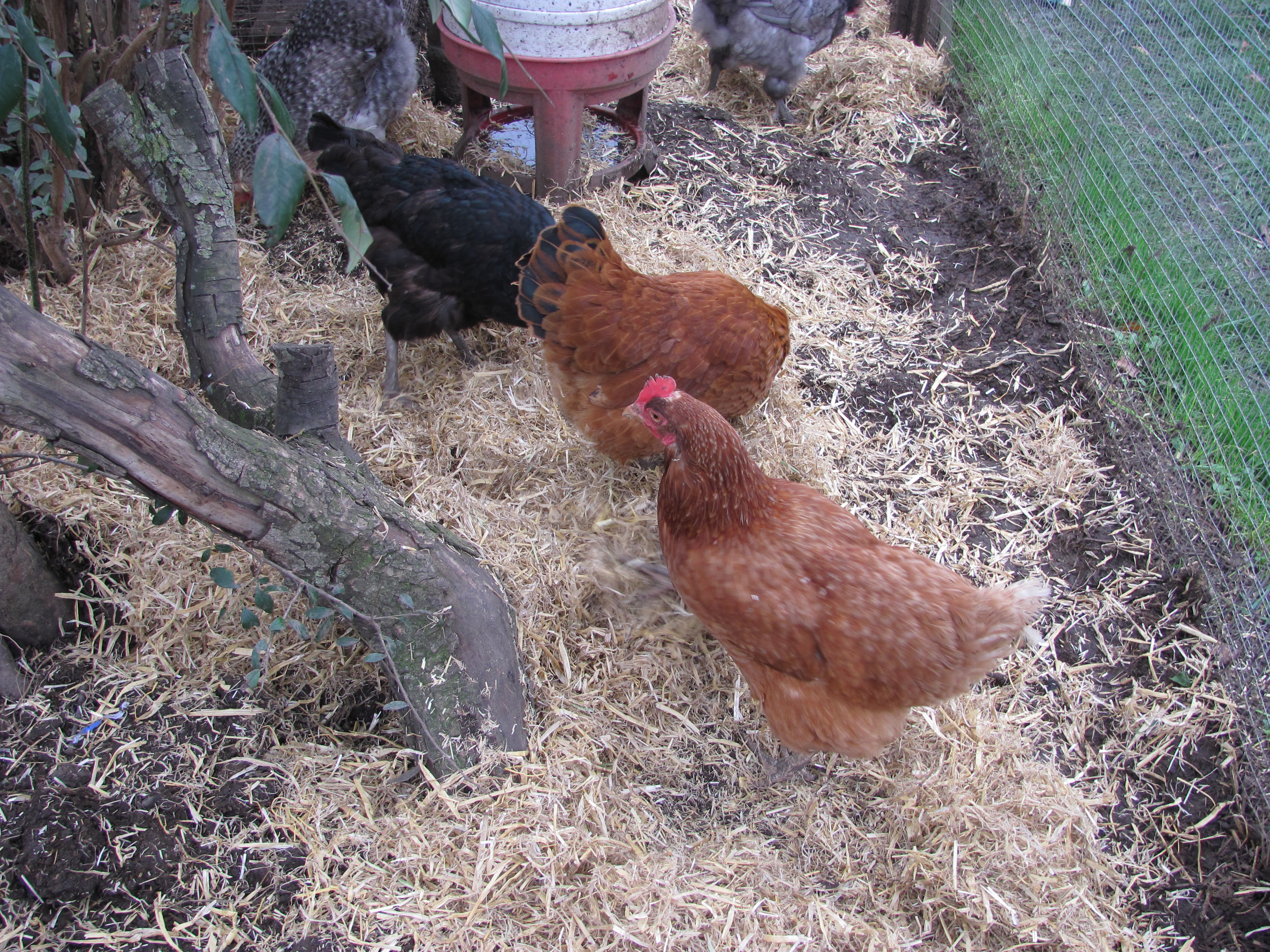 In the foreground of this pic is our original brown hybrid, the friendliest of the bunch, insisting on being picked up every time anyone enters their run.