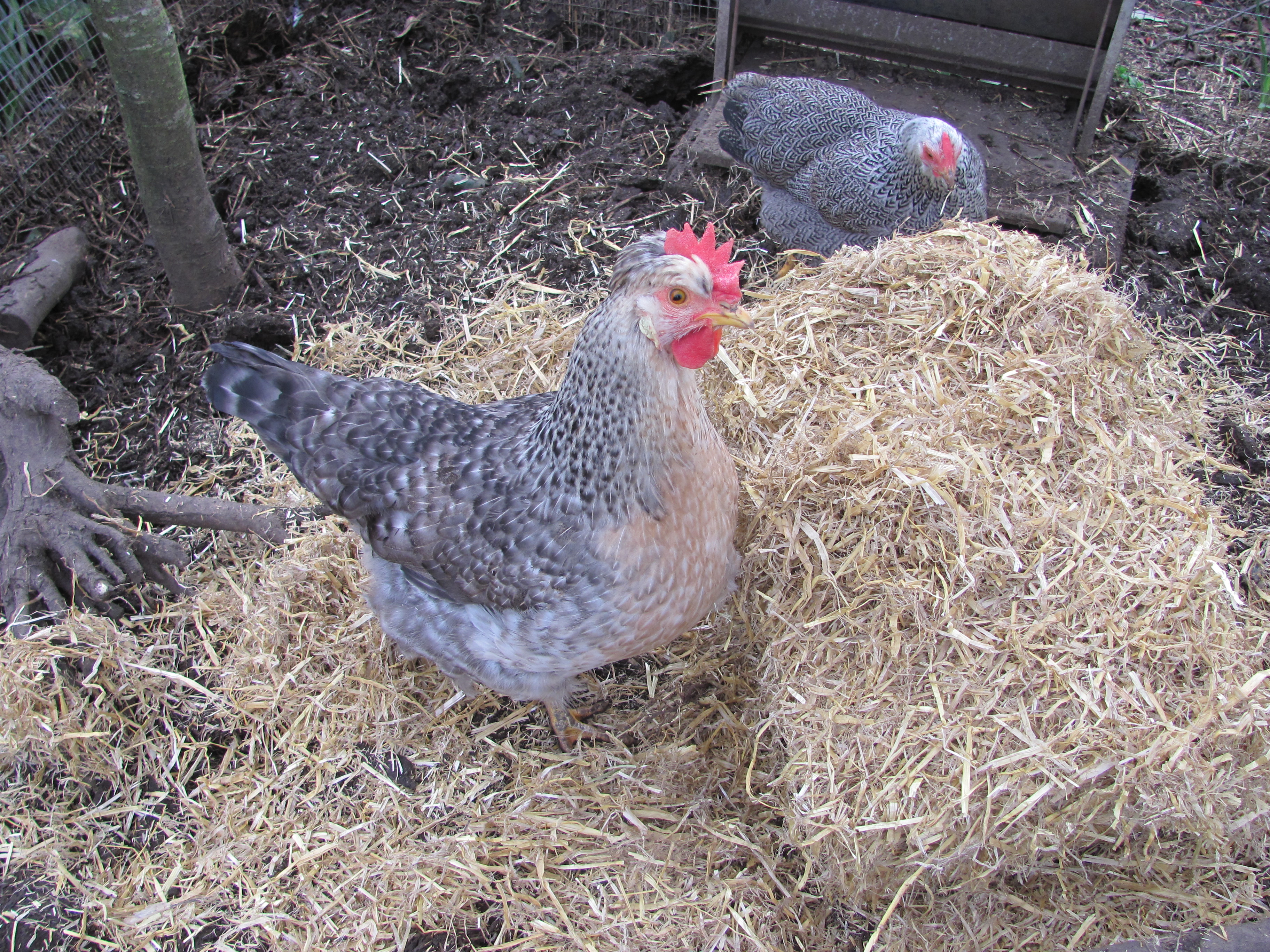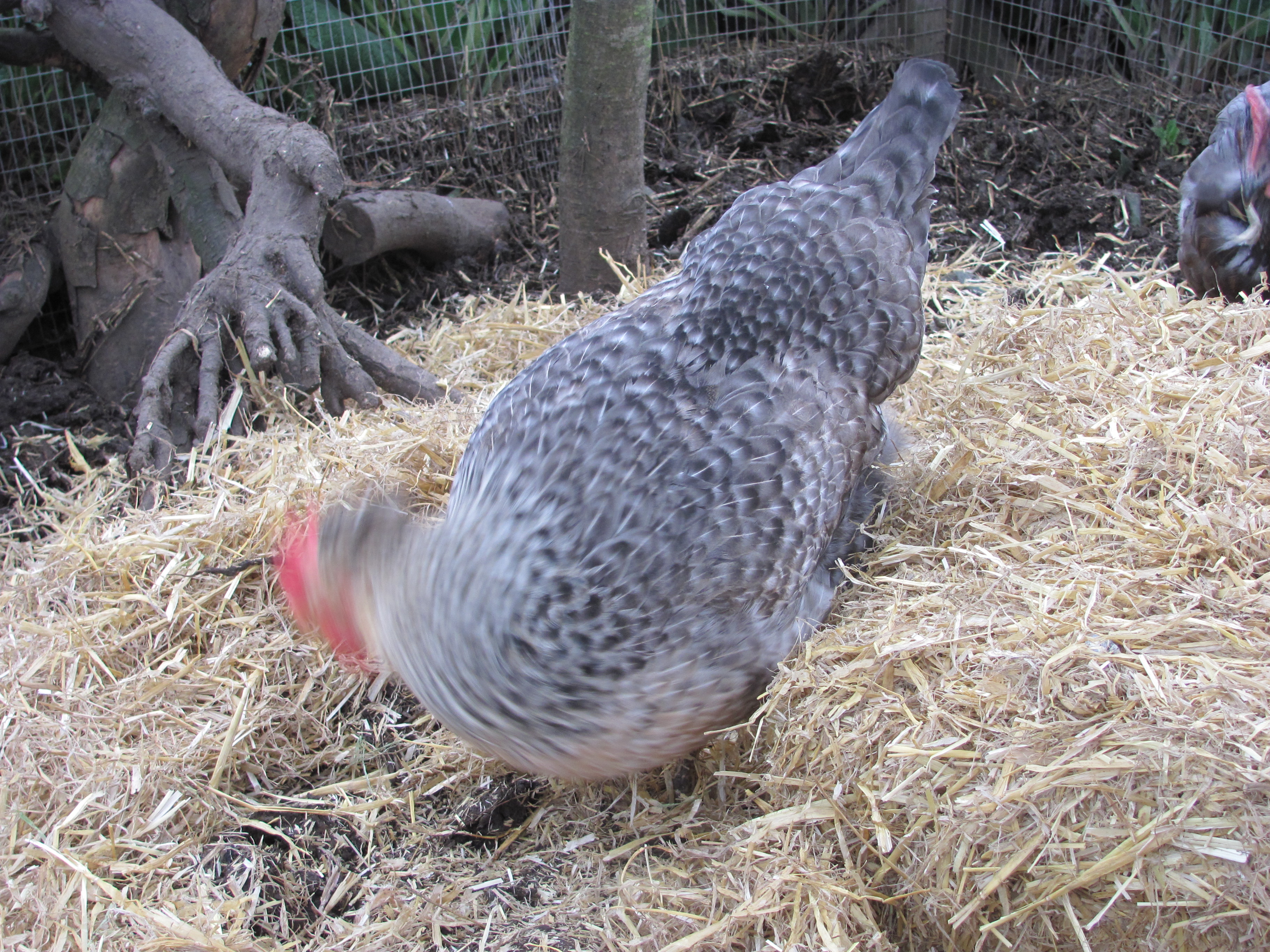 These next two photos prove that taking portraits of chickens is not an easy task, certainly much harder than I imagined it would be. Firstly here is Swampy with her head a high-speed blur as she attacks the straw,