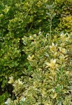 Skimmia “Kew Green” has unusual green flowers instead of the usual reddish shades, while the Witch Hazels sport many shades of yellow.