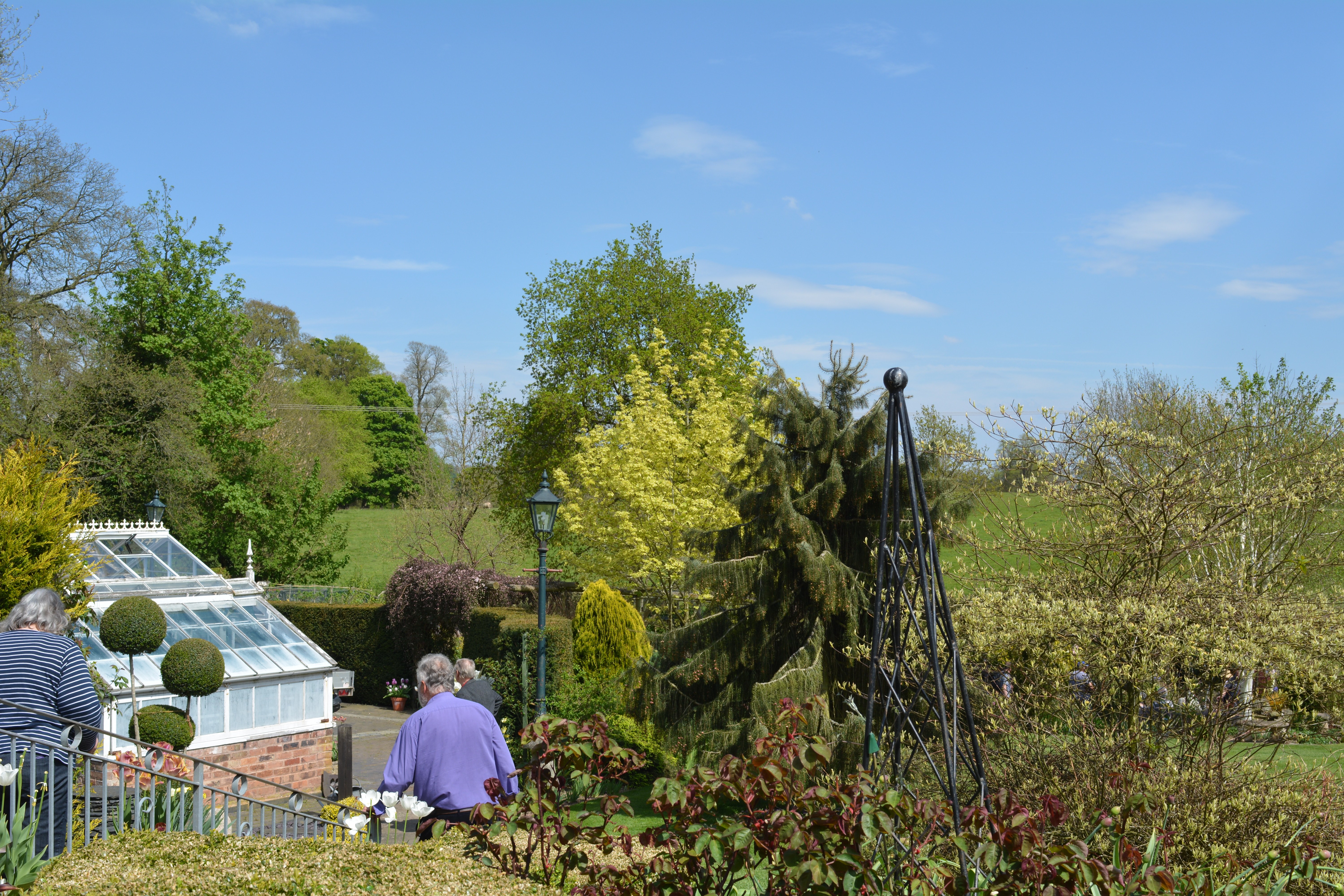 Exploring an interesting little terrace garden finished our visit and we returned to the cafe via John’s lawned area with Betula, Snowdrops, Crocus and sheep.