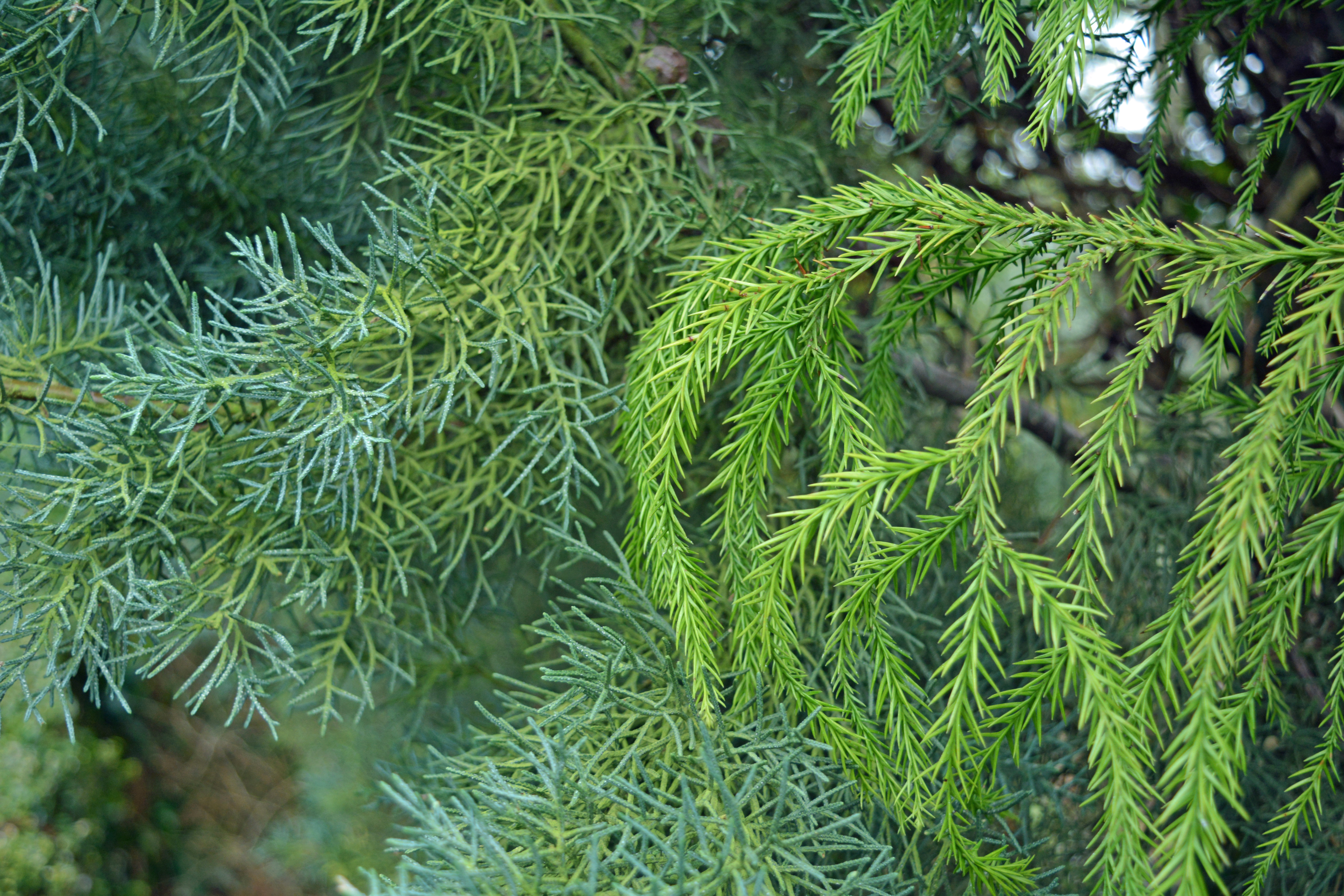 Skimmia “Kew Green” has unusual green flowers instead of the usual reddish shades, while the Witch Hazels sport many shades of yellow.