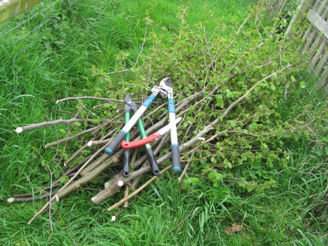Of pruning I wrote, “March is a busy month in our garden. As well as cutting deciduous grasses rather drastically almost down to the ground we have to coppice or pollard Salix and Cornus to ensure we will enjoy their coloured stems next winter.”