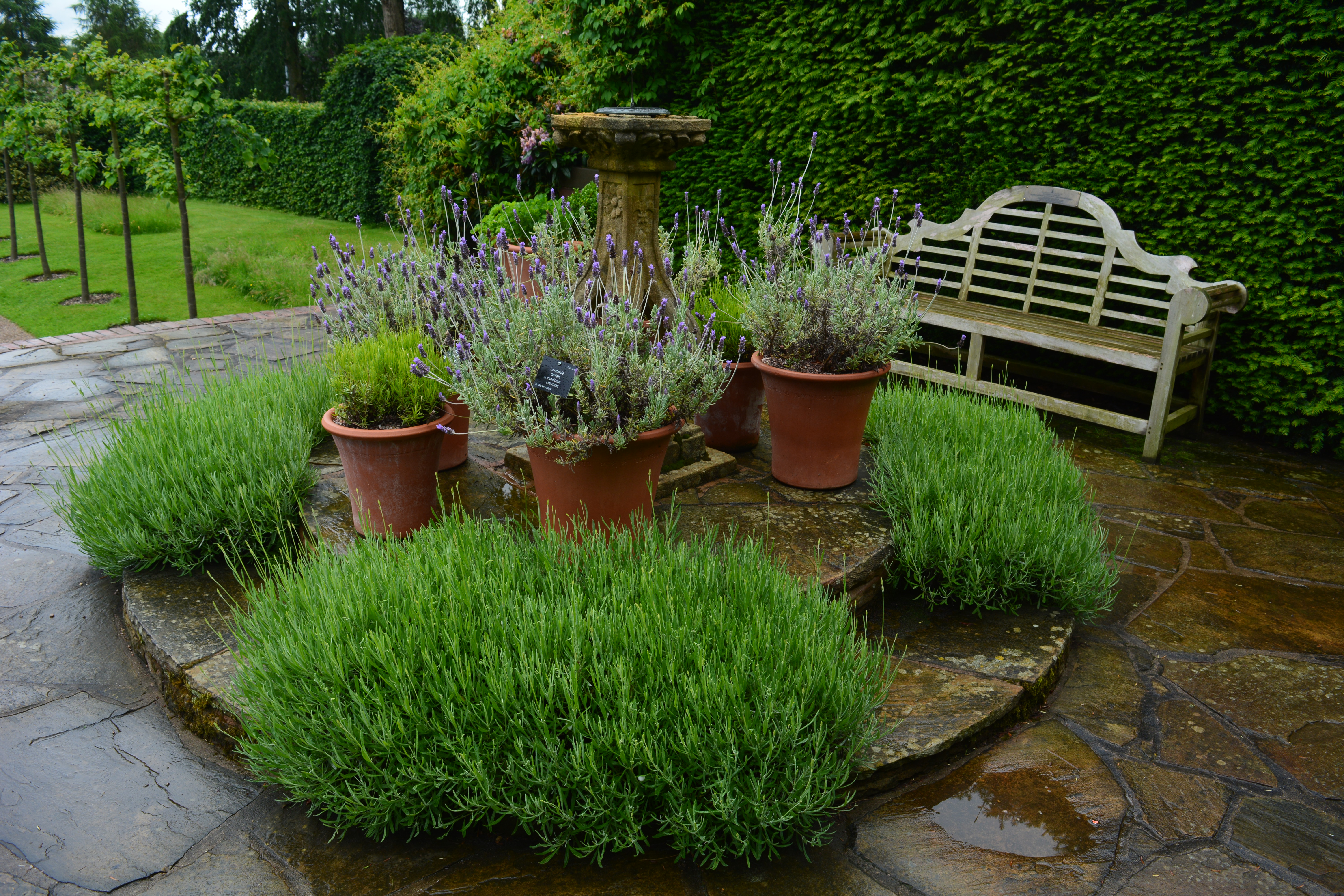 The terrace is a place where you need to stop and study the small details, the pots full of original planting ideas, trimmed shrubs, interesting foliage and some floating blossoms.