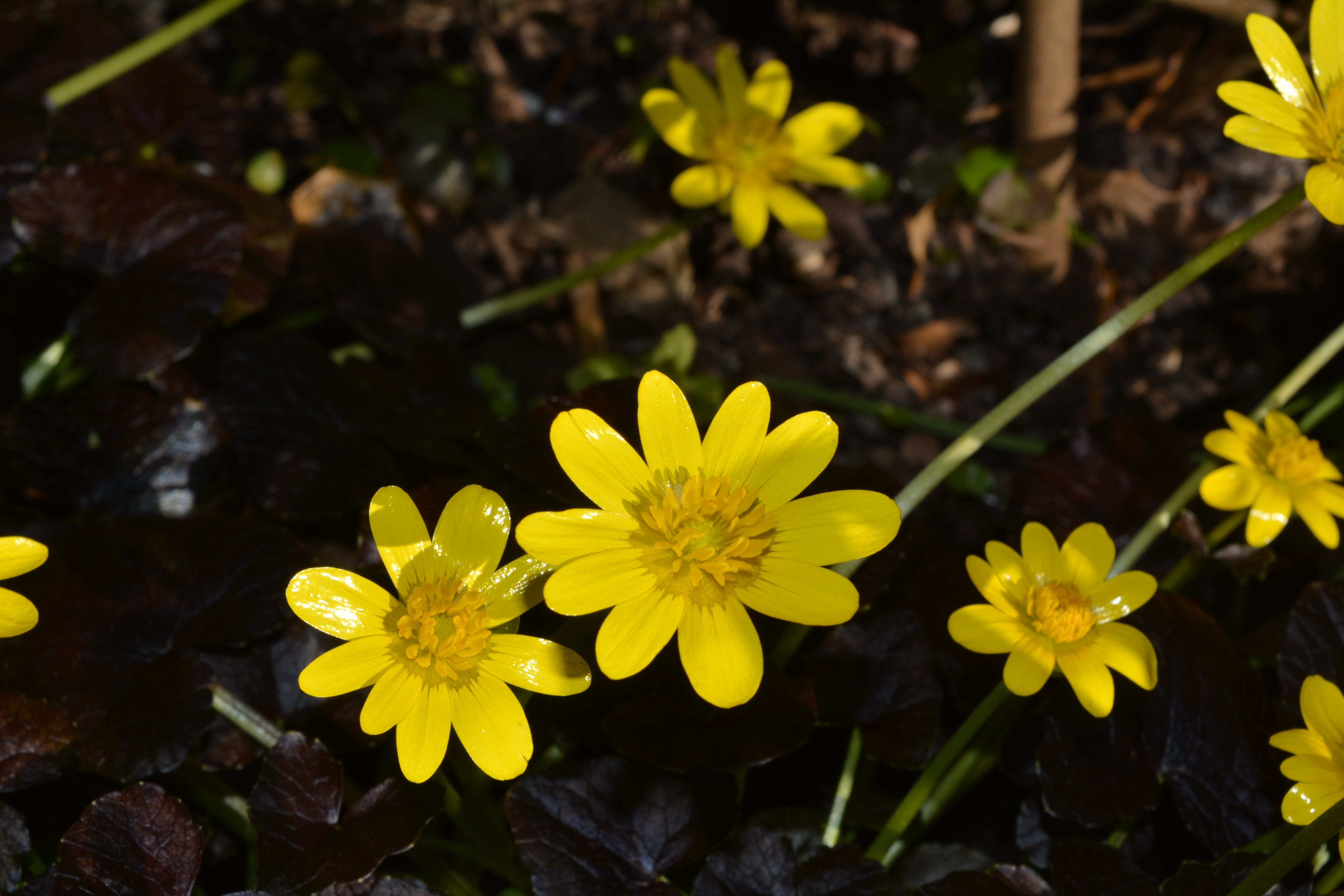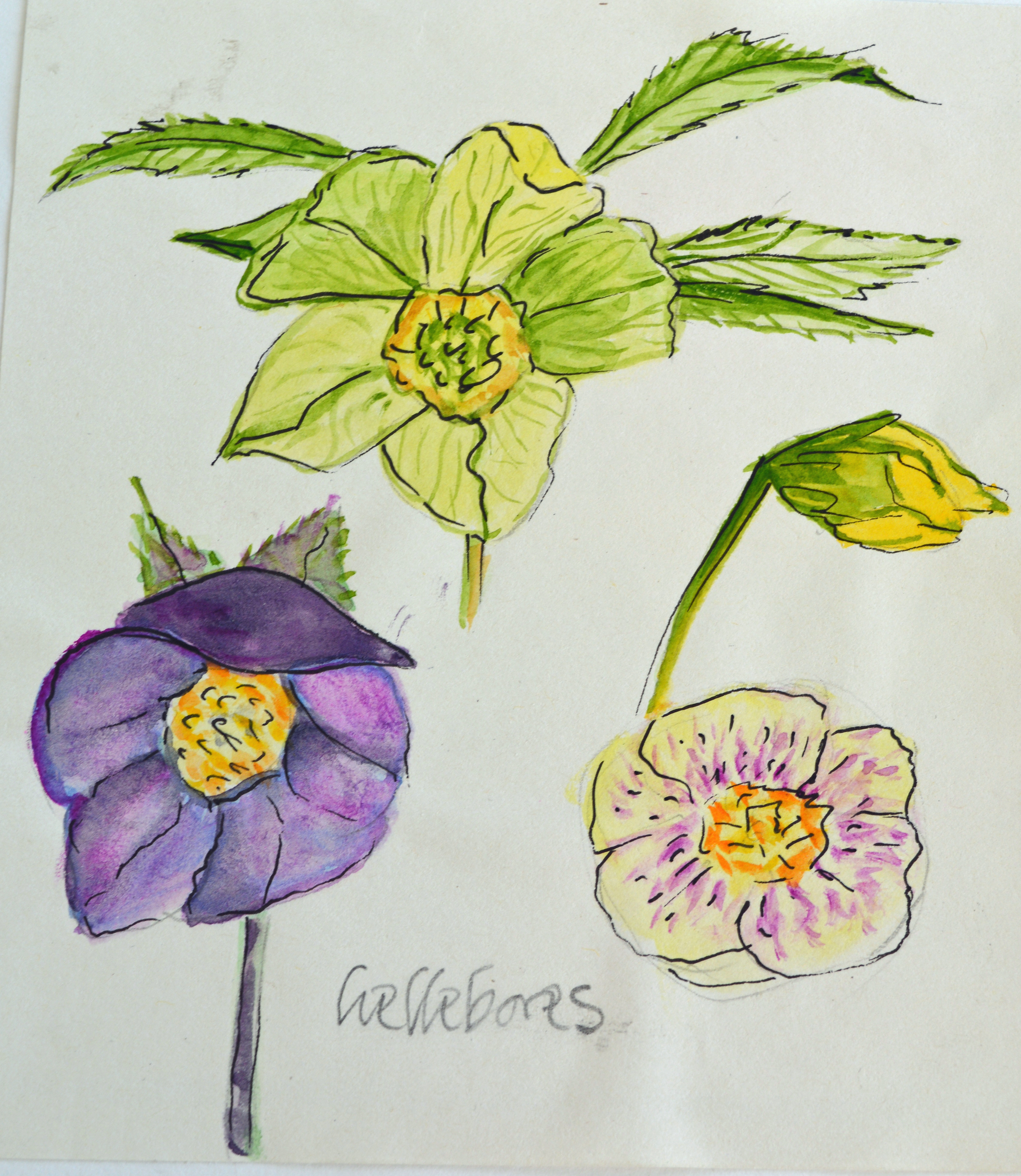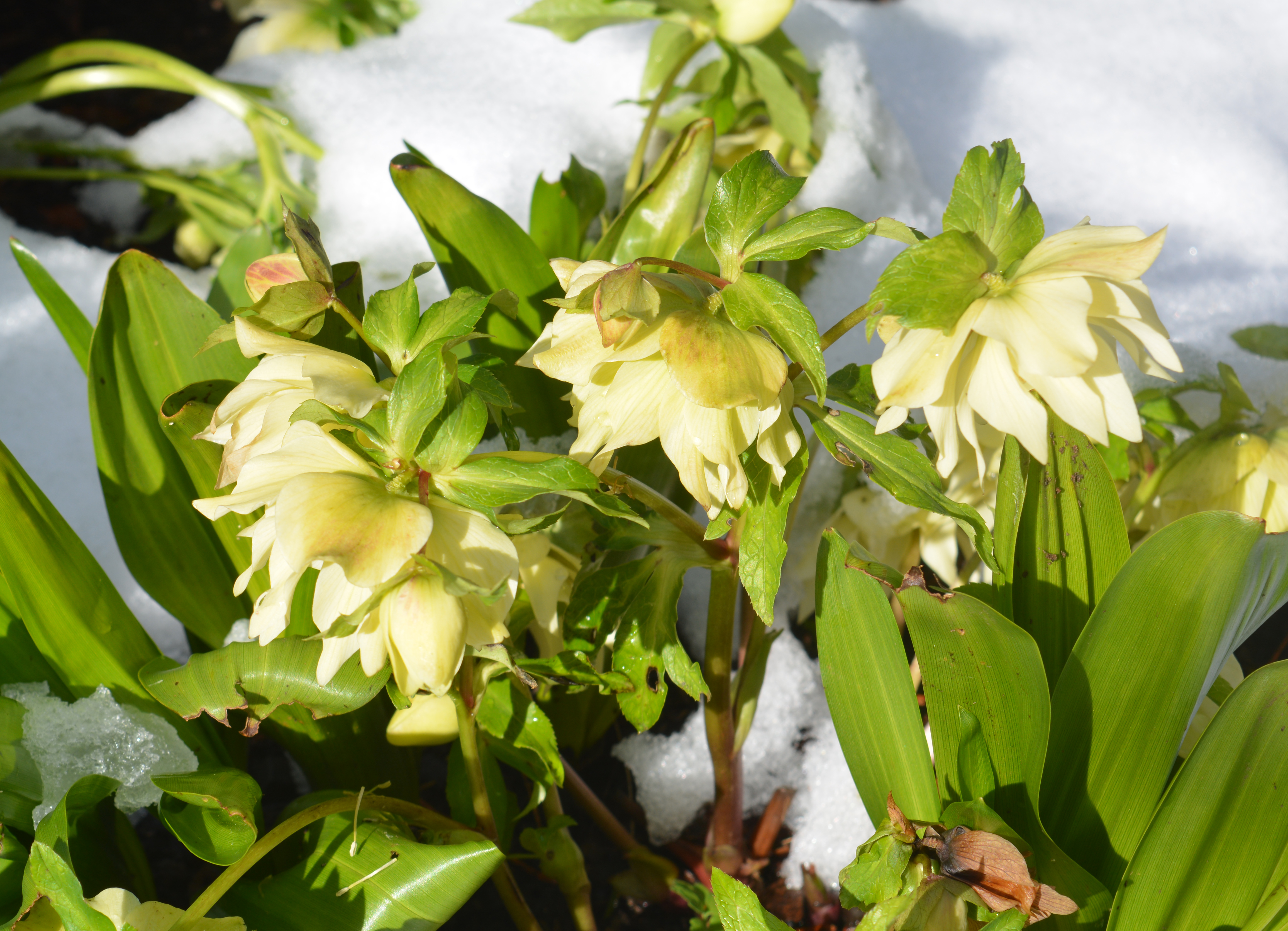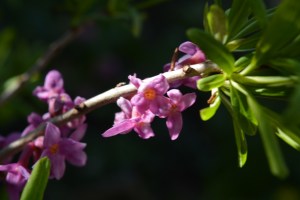 Skimmia “Kew Green” has unusual green flowers instead of the usual reddish shades, while the Witch Hazels sport many shades of yellow.