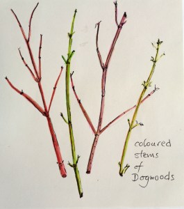 White can be a powerful colour when the winter sun catches it, as in the bleached stems of Teasels, the trunks of white-bark Birch and the ground covering Carex.