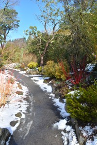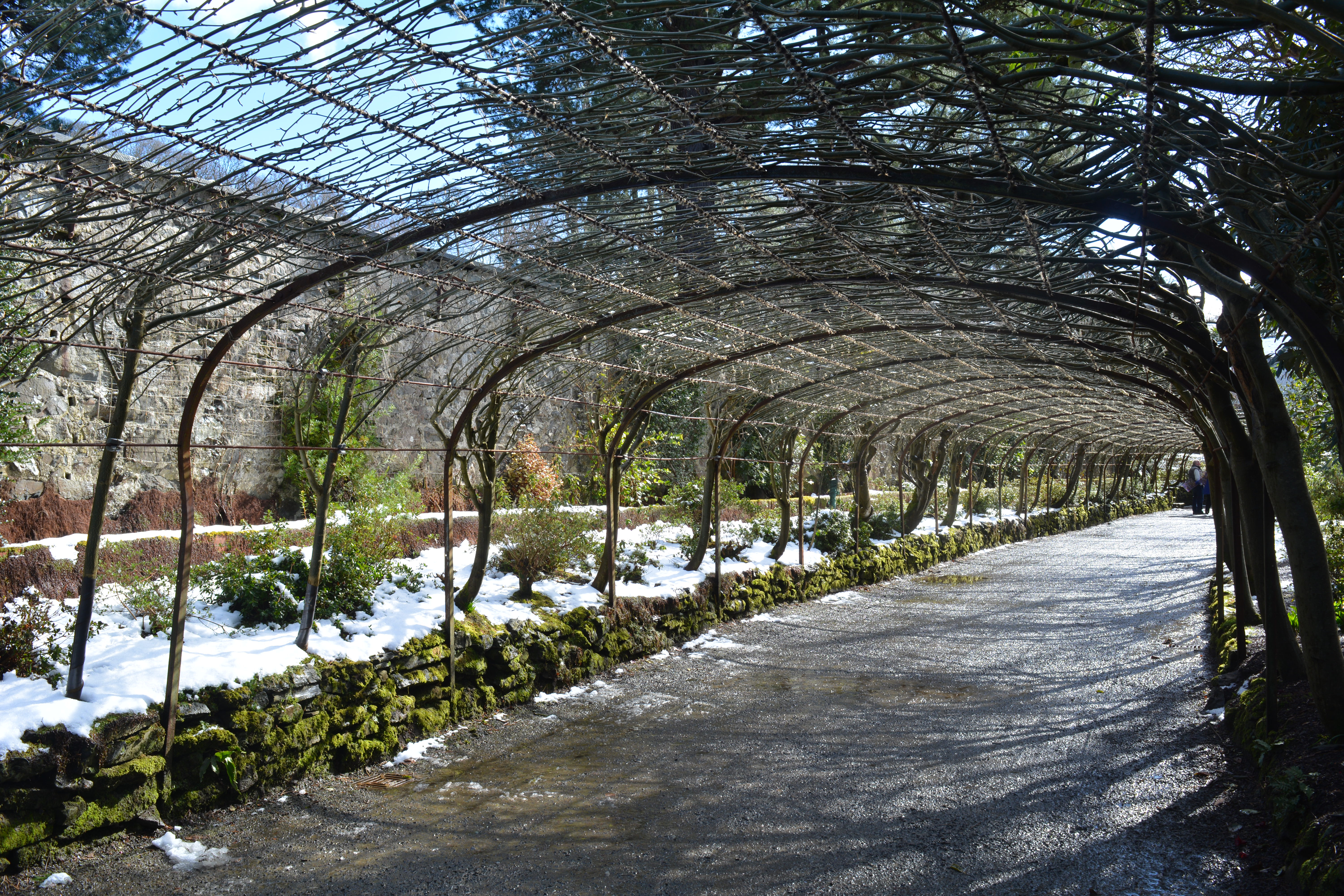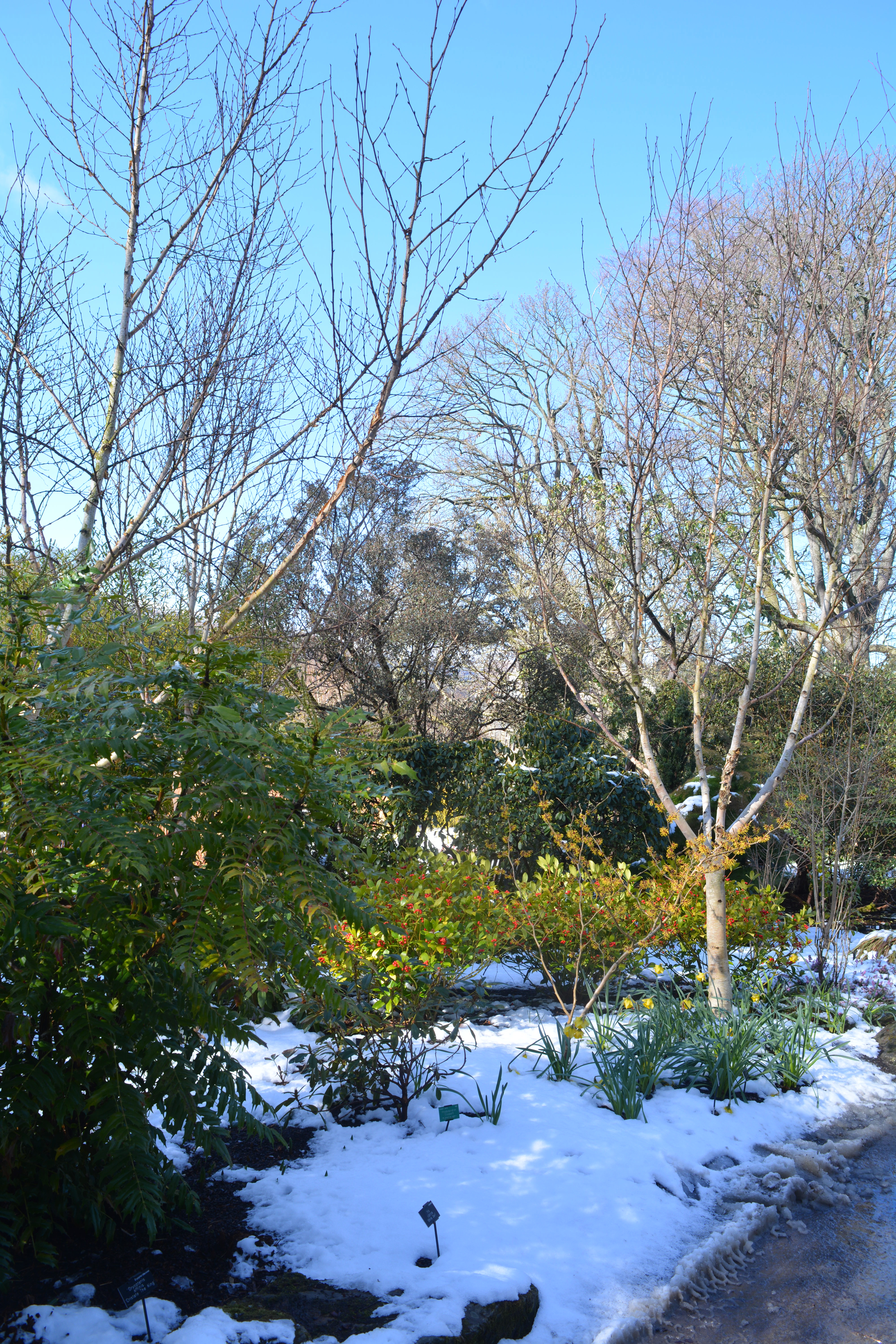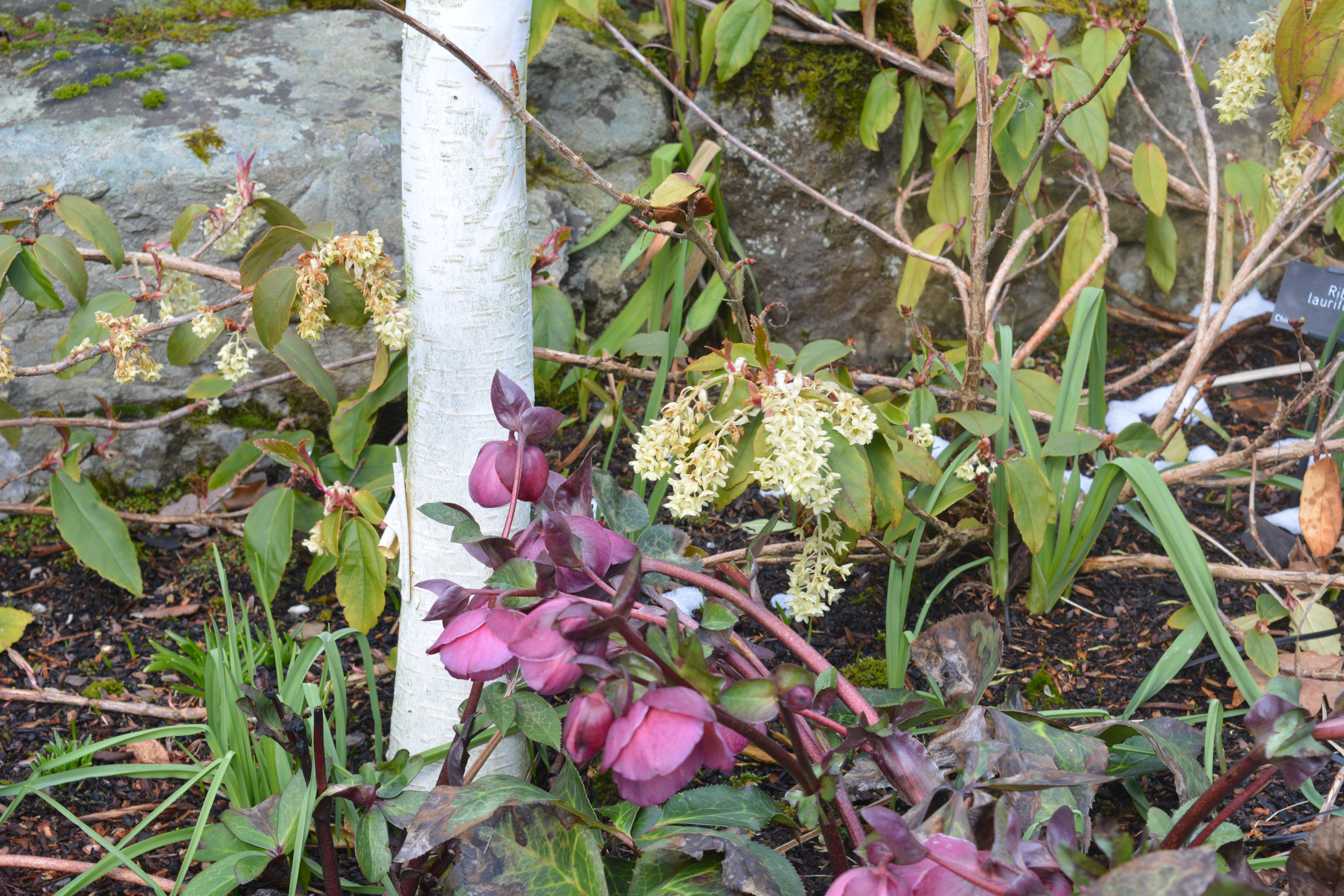 Exploring an interesting little terrace garden finished our visit and we returned to the cafe via John’s lawned area with Betula, Snowdrops, Crocus and sheep.