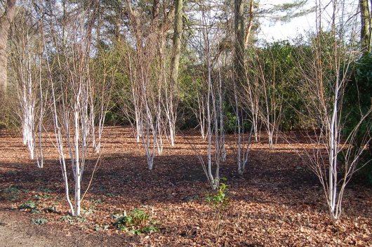 There were two distinct areas of Birch trees, single stemmed specimens one side of a path and multi-stemmed on the other. Betula utilis “Doorenbos” was the chosen variety and their trunks were a clear crisp white.