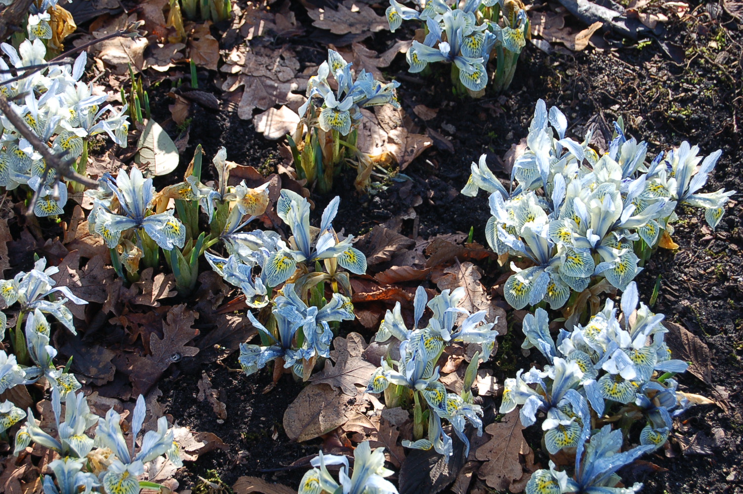 As well as the usual winter flowering bulbs such as crocus, snowdrops and daffodils there were several different coloured varieties of Iris reticulata those tiny bulbous plants with over-sized flowers in shades of purple and blue, all with yellow beards.