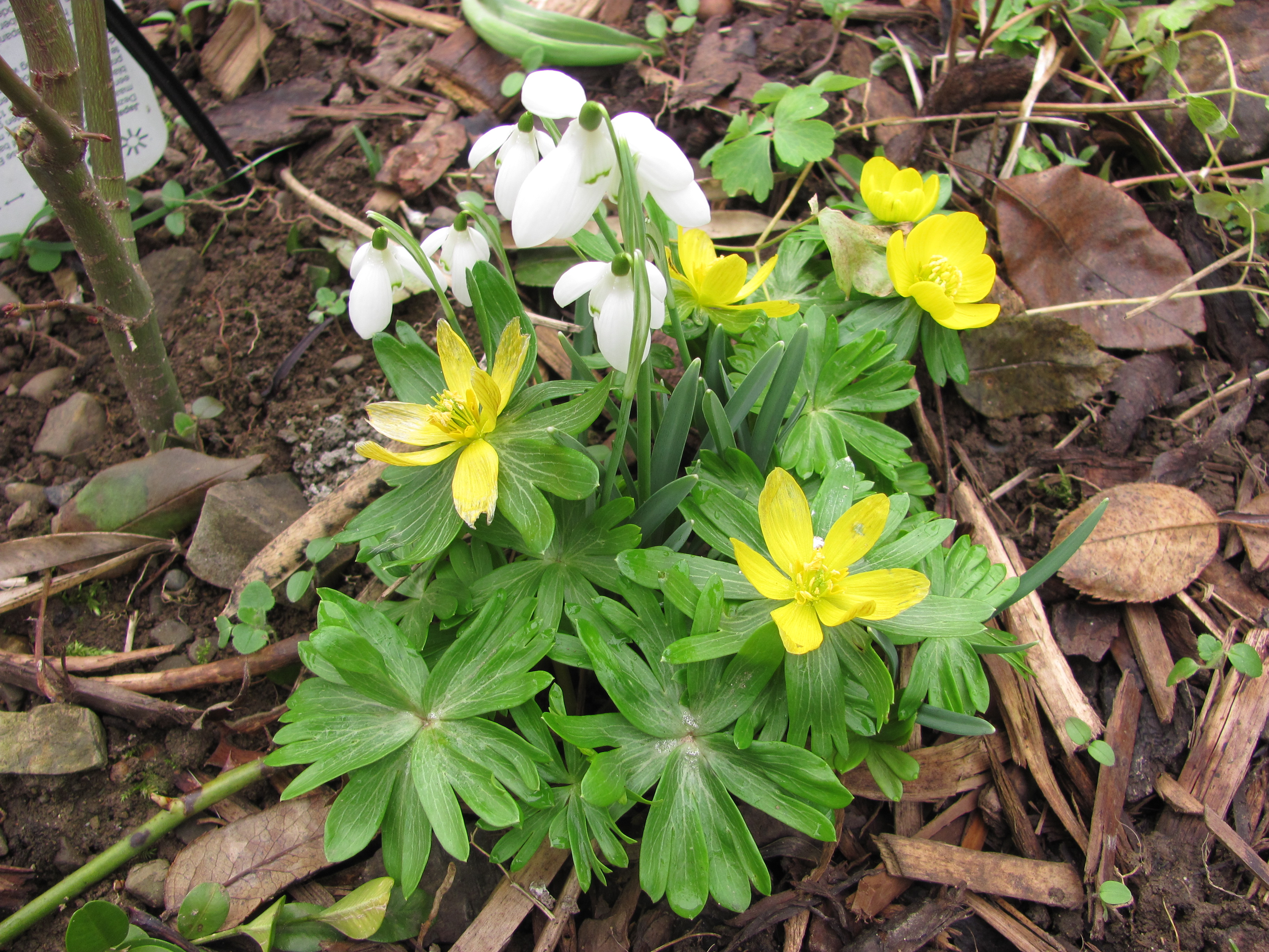 A bright sunny day! And mild too! We just had to spend it in the garden clearing away old leaves and flower stems of perennials, finishing pruning the climbing roses and as the grass was dry giving it a quick skim over with the mower. A bit of early Spring cleaning. As we worked our way around we sere periodically stopped in our tracks by the sight of colourful flowers.