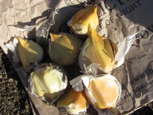 We haven’t used excessive amounts of fertiliser to get them to this size just simple organic gardening techniques. Lots of manure dug into the ground, deep mulches of garden compost and feeding with comfrey feed made from our own comfrey plants. Not root crops these but they did delight and surprise us with their size and flavour. Elephant Garlic is not garlic at all but more closely related to leeks. We eat them roasted when they taste of sweet, delicate garlic.
