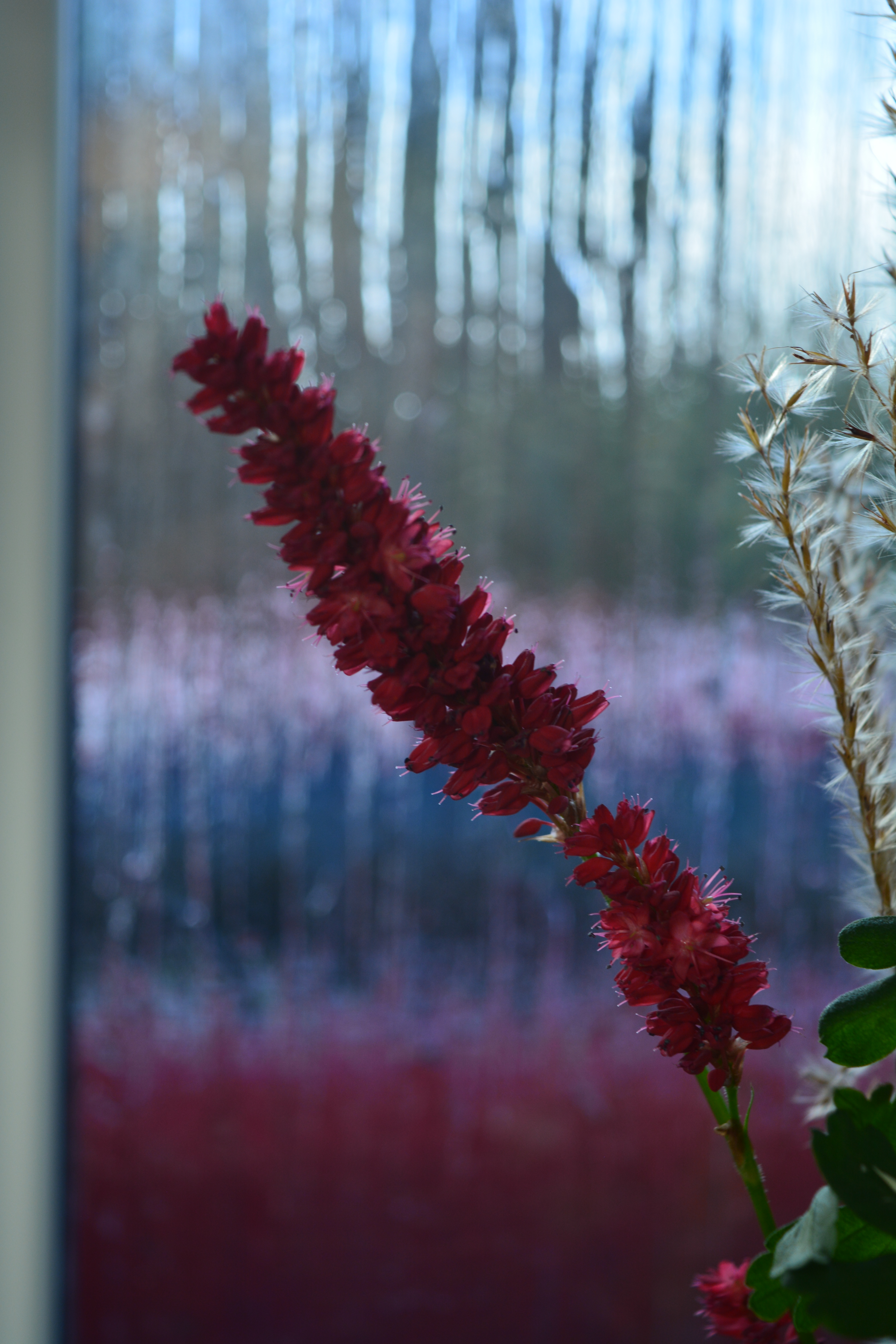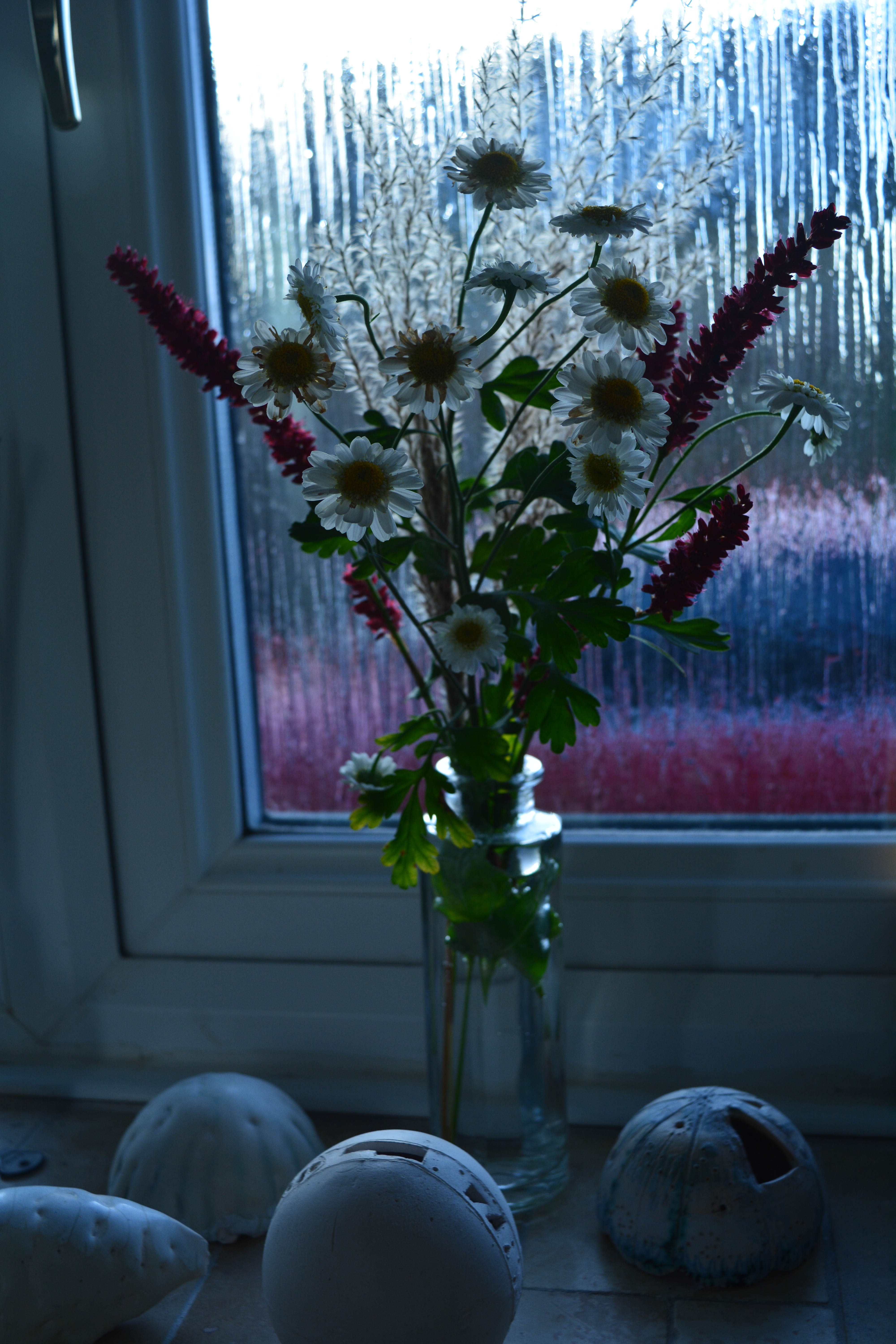 For my eighteenth post in this occasional series concerning thing that are “simply beautiful” I want to share some photographs of a small vase of flowers cut from our November garden and displayed in our bathroom window.