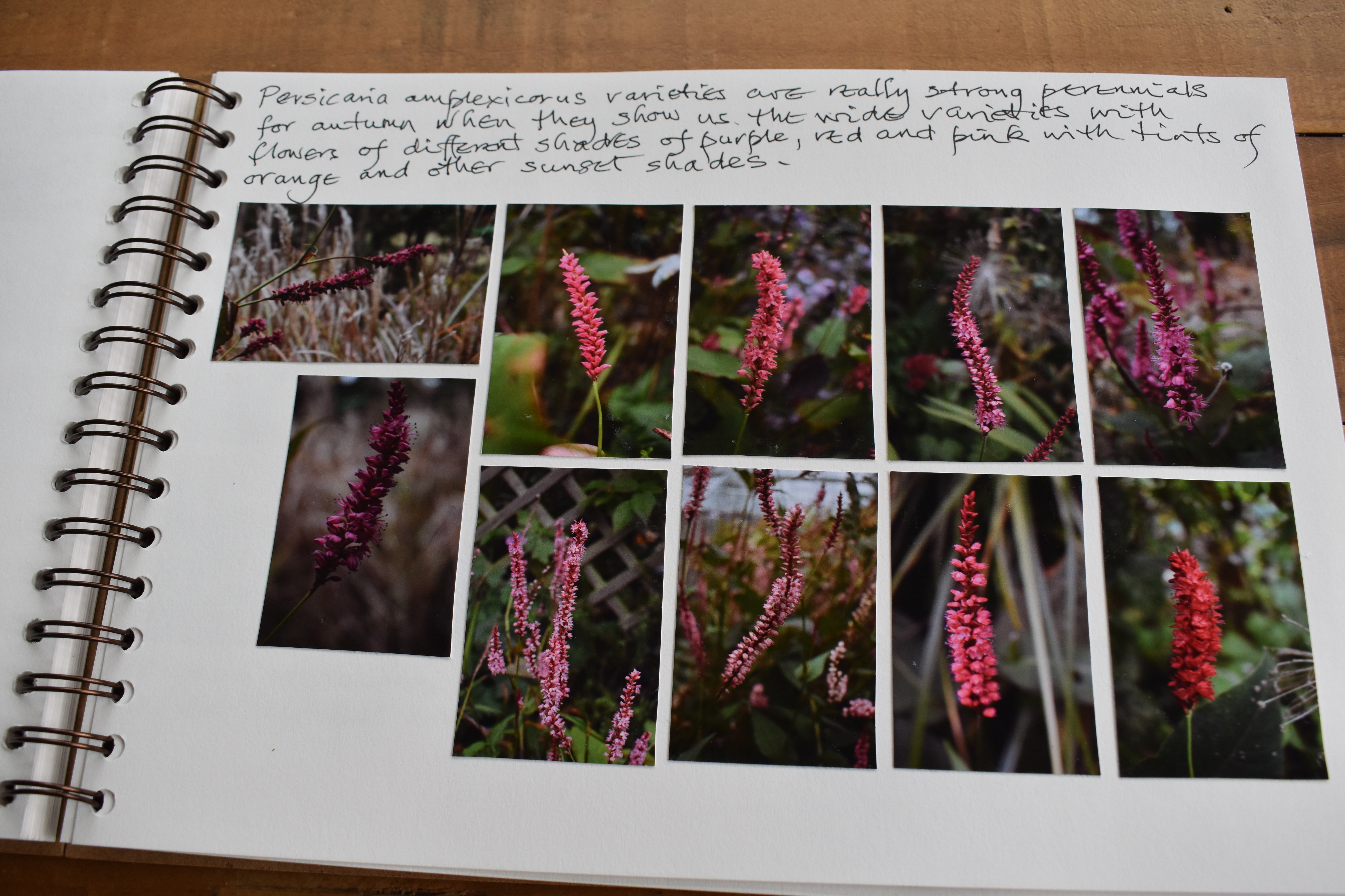 On the opposite page I featured persicarias, where I wrote, “Persicaria amplexicorus varieties are really strong perennials for autumn when they show us the wide varieties with flowers of different shades of purple, red and pink with tints of orange and other sunset shades.”