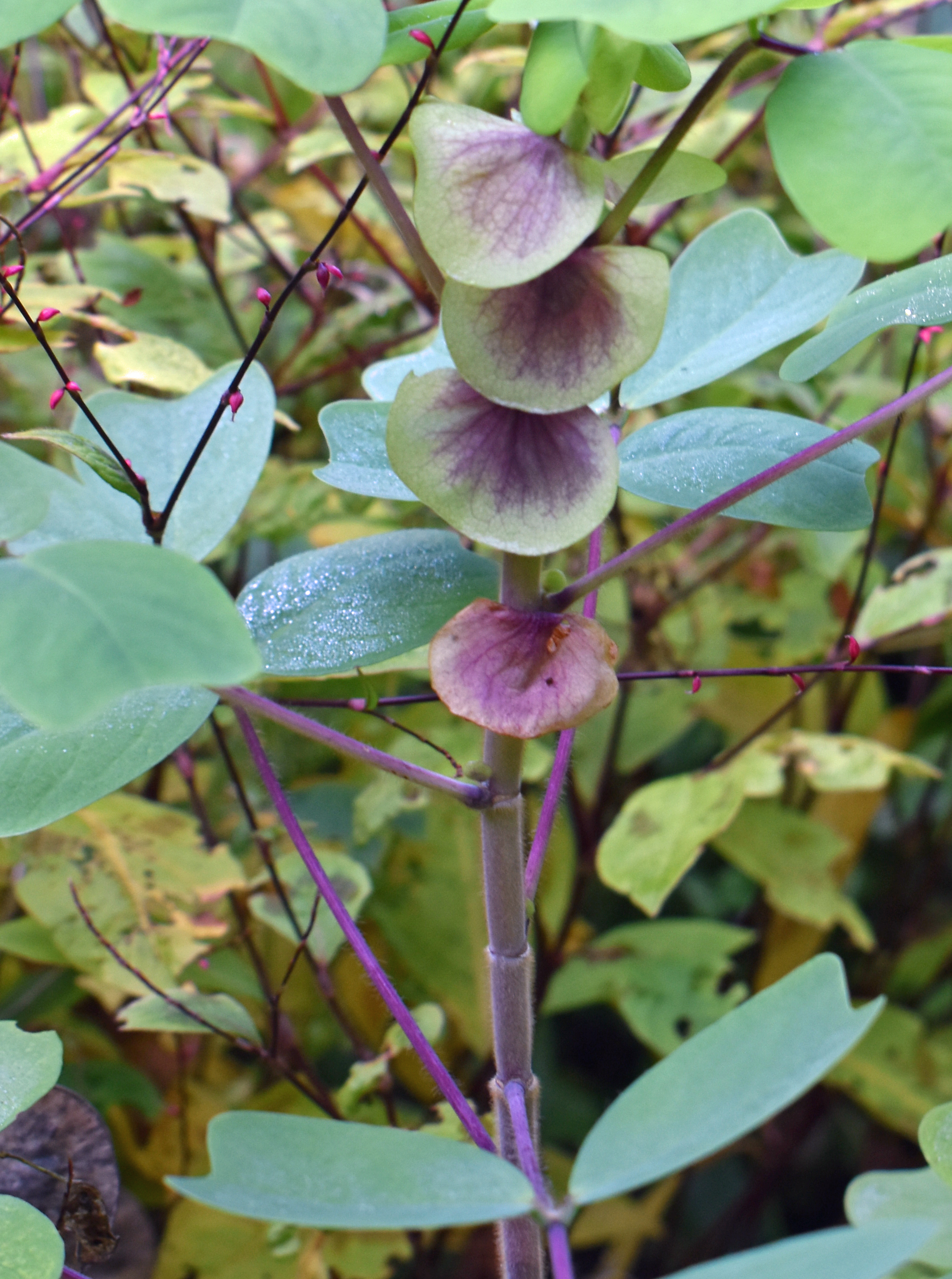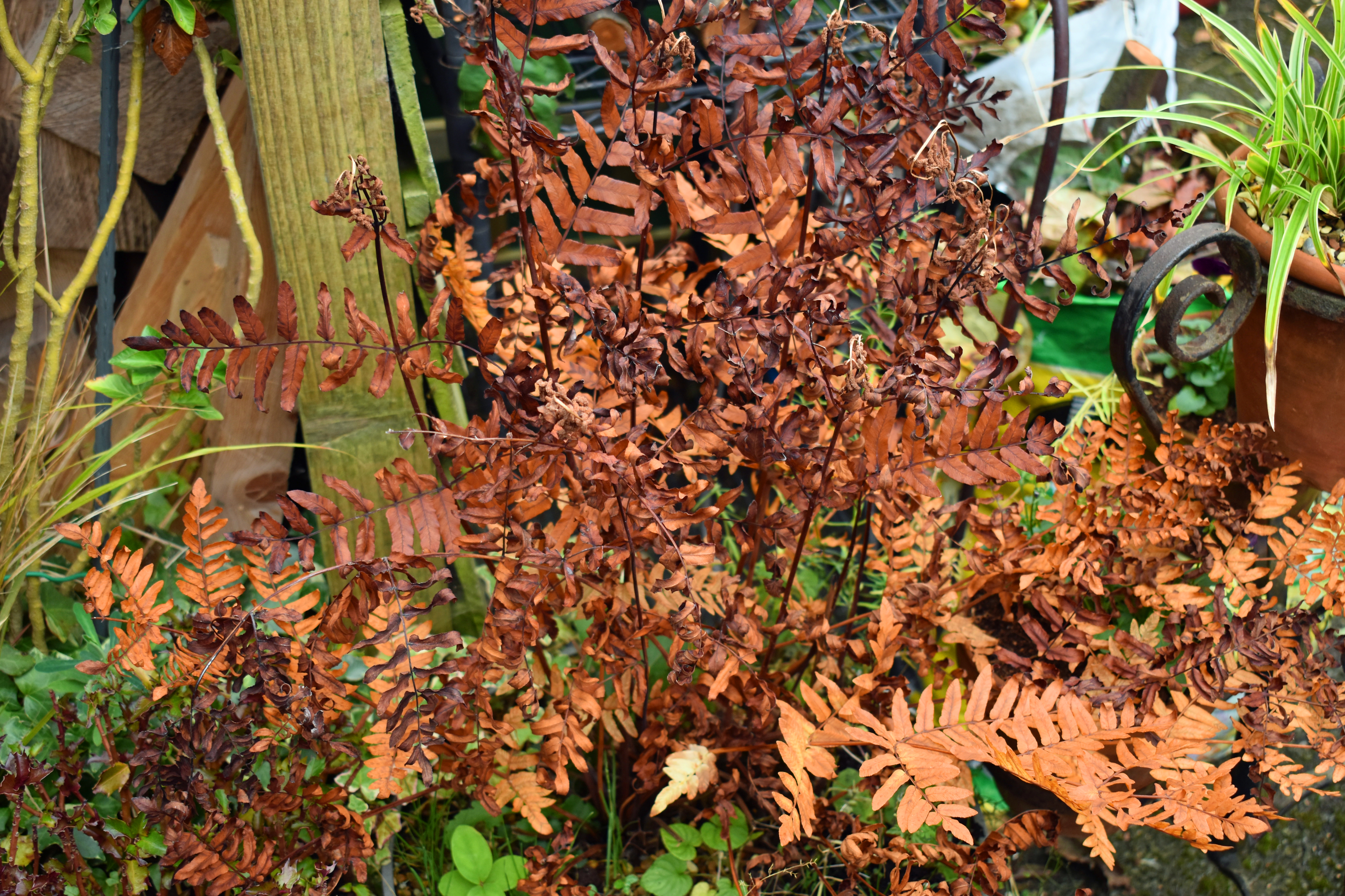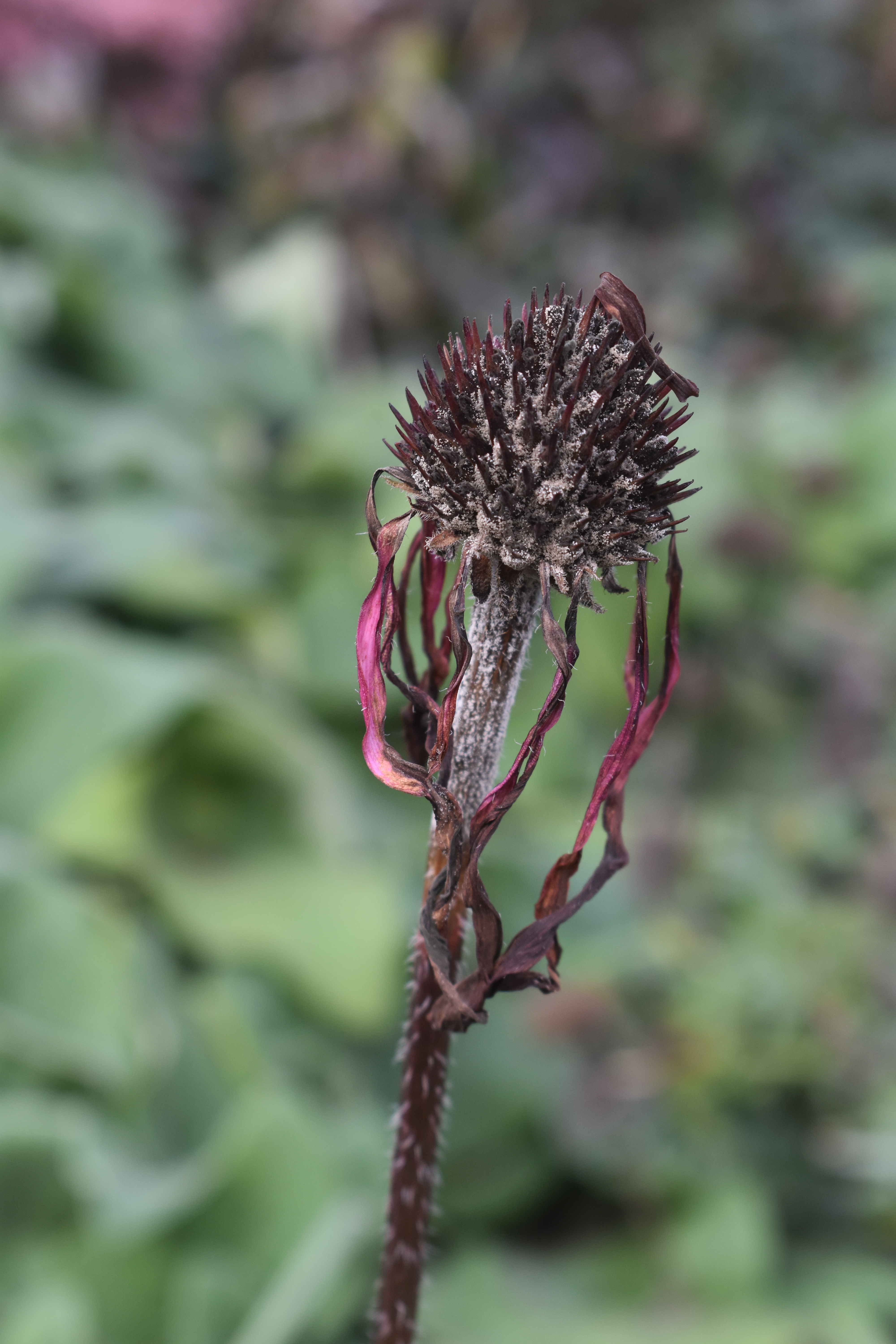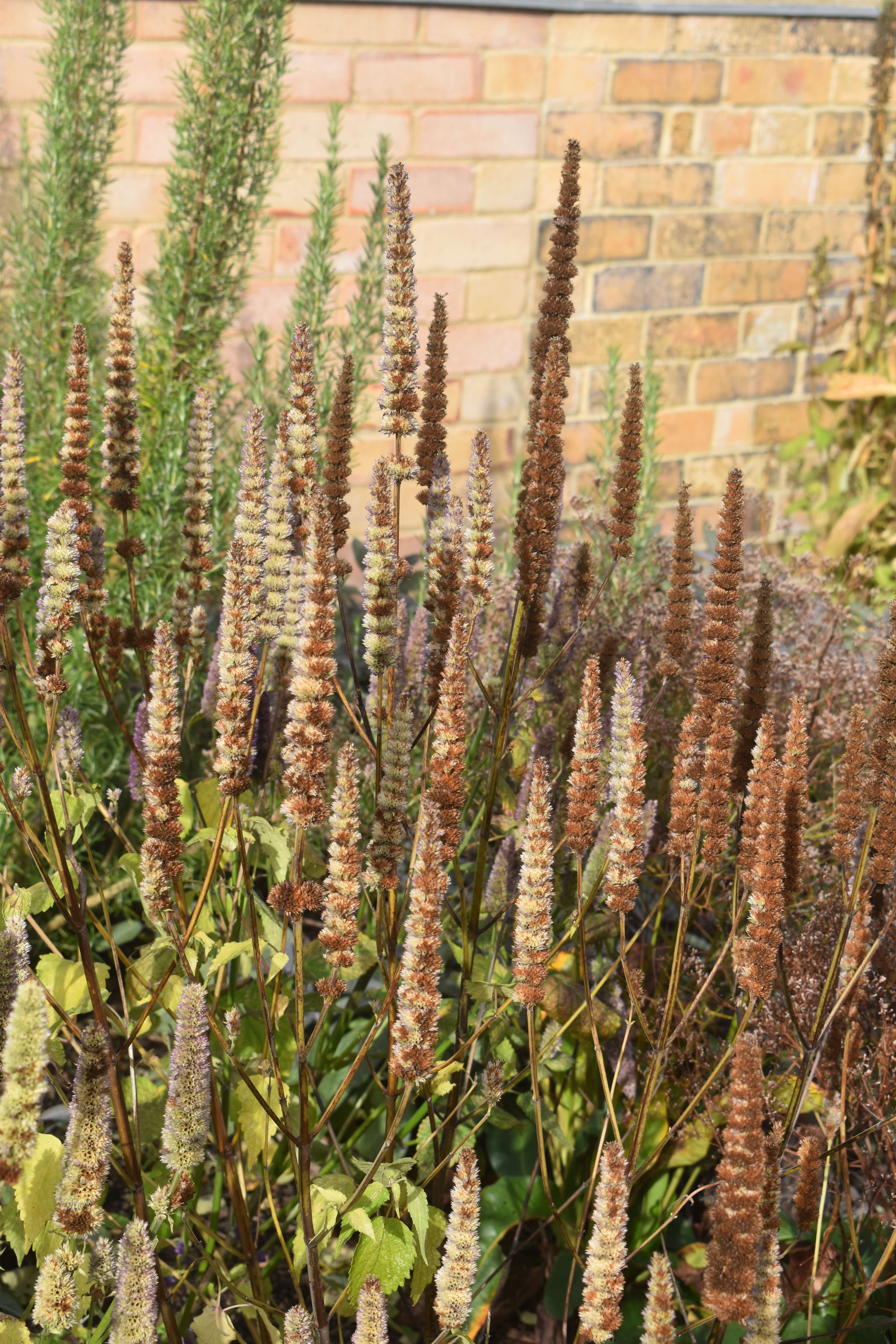 The third photo in the trio of photos above features the seed head of a large specimen Sedum ‘Autumn Joy’. About this I wrote, “The flower heads of Sedum turn to seed heads in late summer and early autumn. Looking carefully at these seed heads we can see ginger, brown, biscuit, grey, orange and pale blue.”