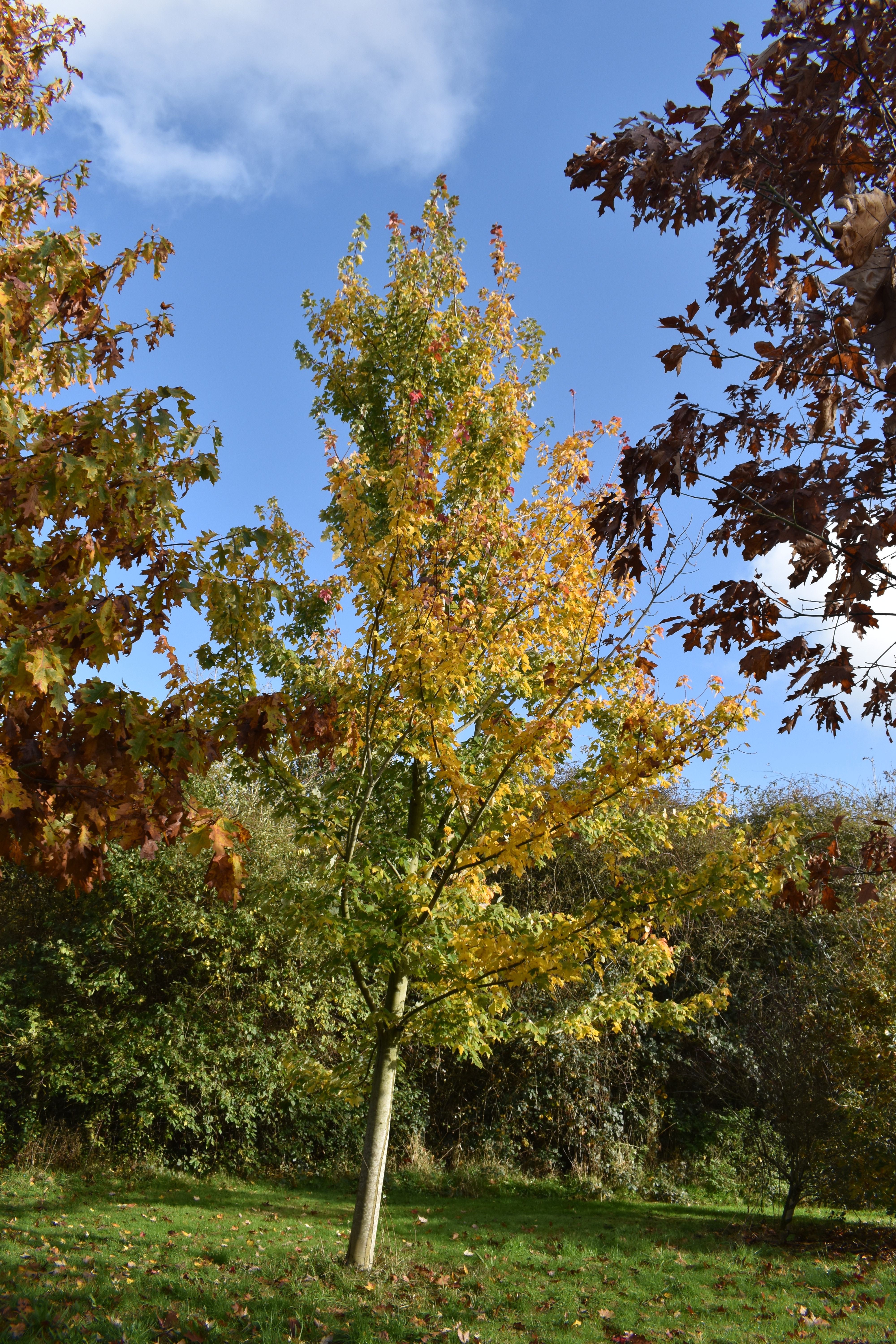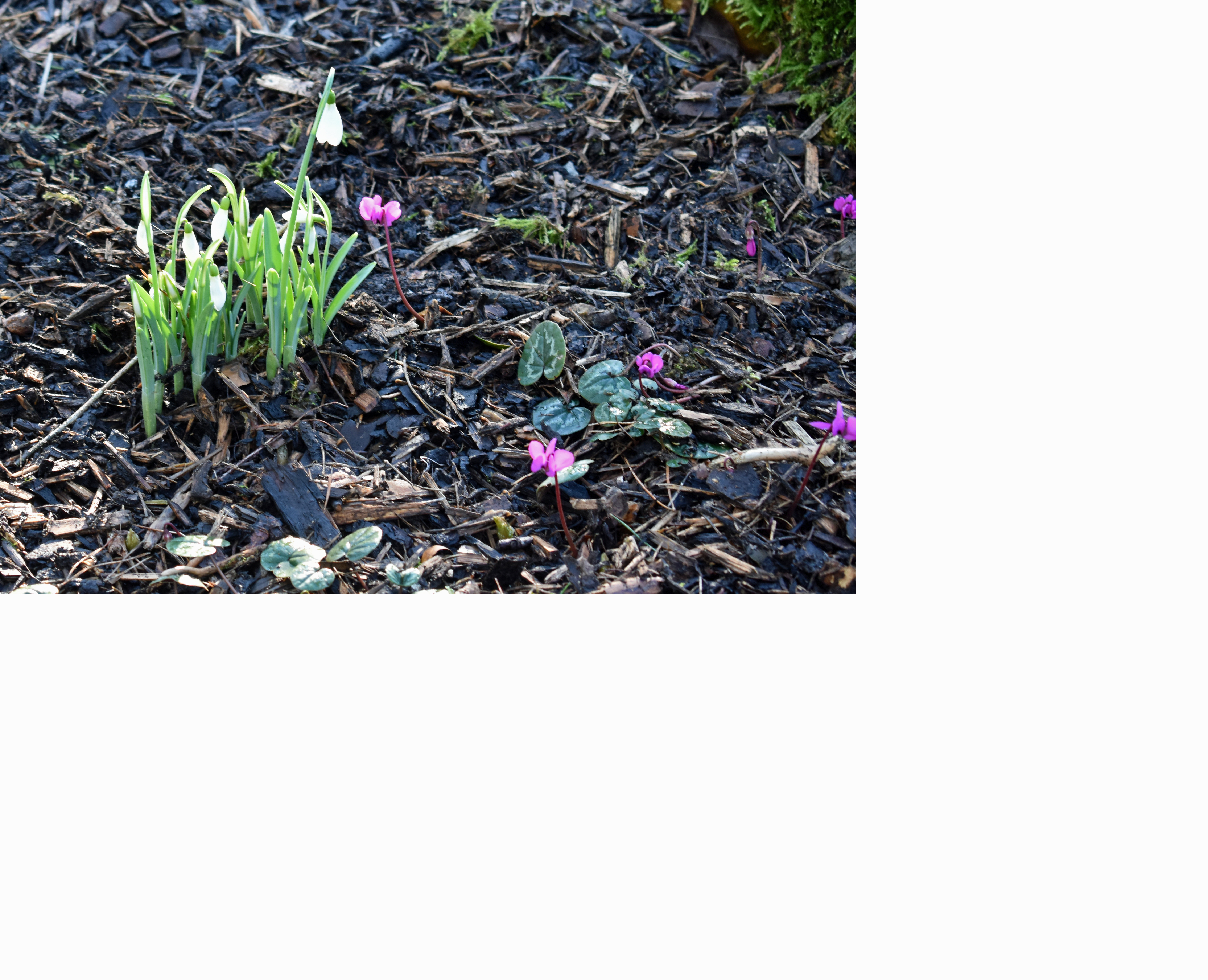 “A waterfall of cyclamen below the Acer campestre. Snowdrops flowering among ferns.“