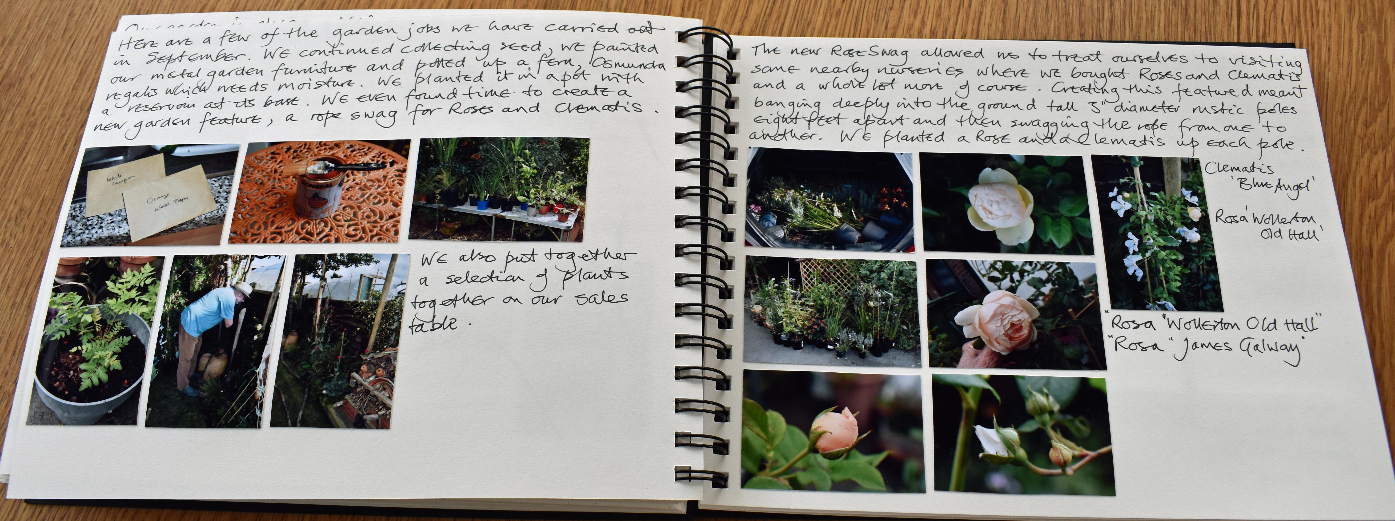 I finished off my February journal entries with a double page spread of photogrsaphs illustrating our “Gardening tasks for February”.